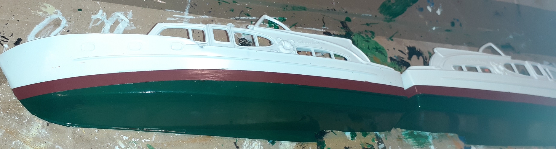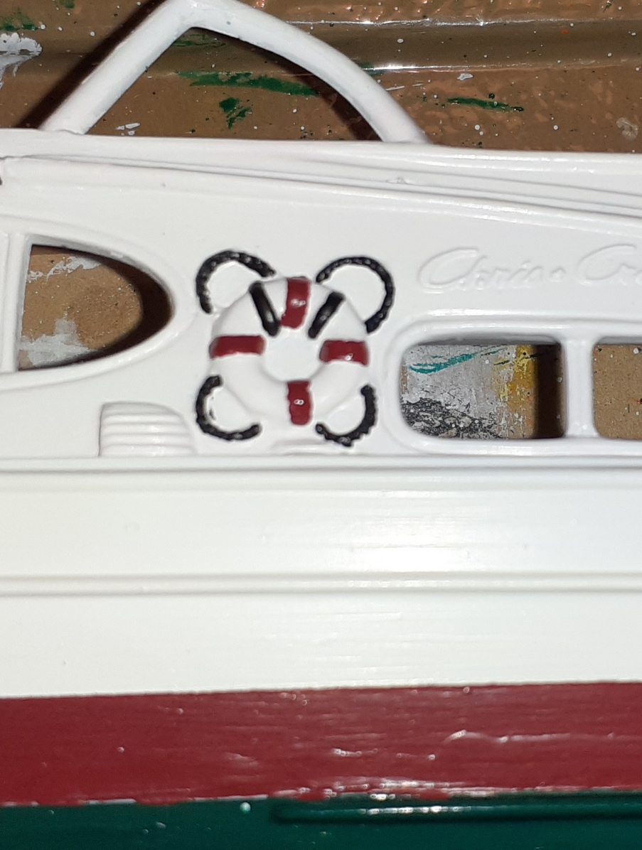 Die Rettungsringe und die weiße Grundierung am oberen schiffsteil sind erfolgt...