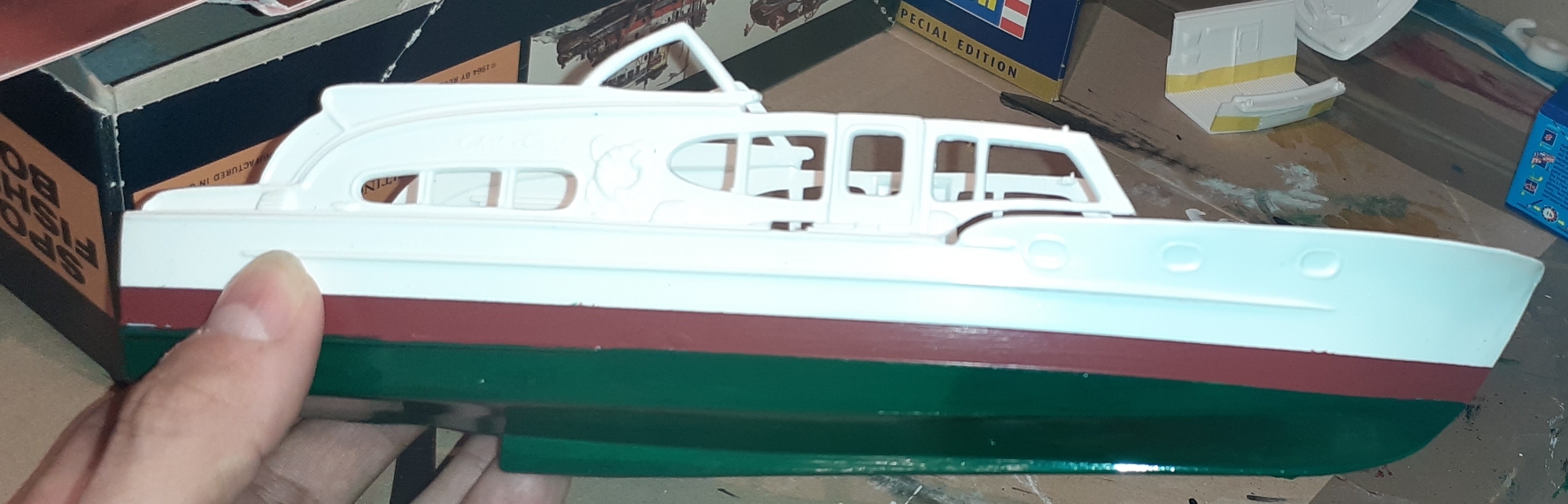 Angefangen wurde mal schön gemütlich mit dem Ständer des Bootes, der die gleiche Farbe wie der Bootsrumpf haben soll....