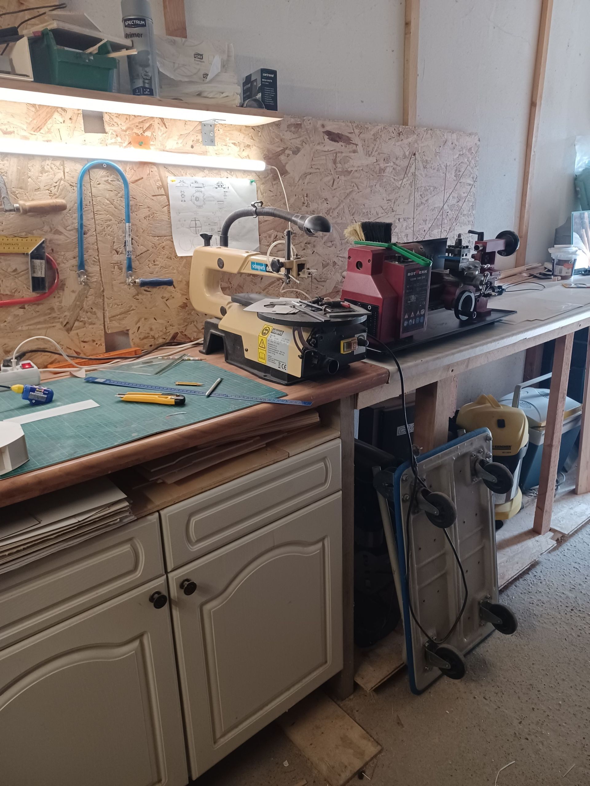 Der Rumpf wird noch nachgearbeitet, aber erst wenn die Elektronik drin ist. Meine ersten Versuche mit Polystyrol und Aluminium. Die Rohre sind konisch gedreht. Jetzt muss ich mal sehen wie ich die Rohre so fixiere das es nicht die Form von dem Turm verändert. Im Moment verarbeite ich PS in den ...
