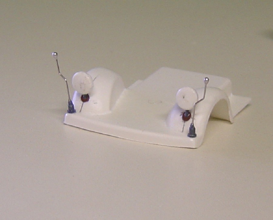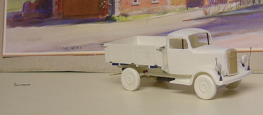 Am Kotflügel gab es och die Bausatzlampen und Peilstäbe aus Stecknadeln.