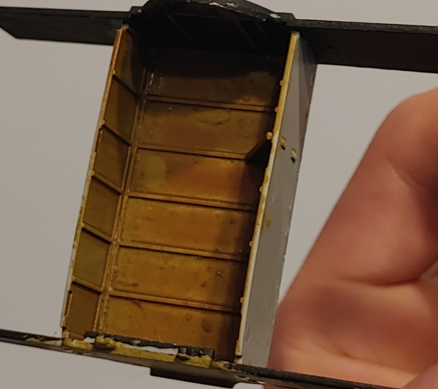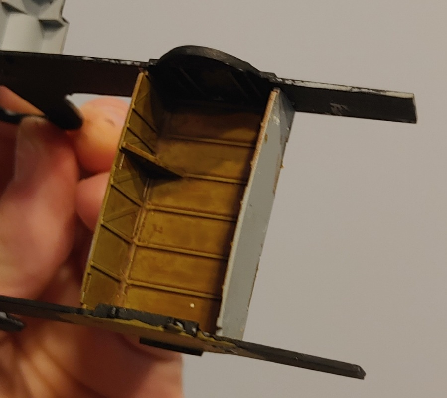 Hier die Box: Wie erwähnt, habe bei der Bemalung des Innenraums meiner Fantasie freien Lauf gelassen: Hier noch der "Raum" fürs Fahrwerk Das wärs fürs erste...