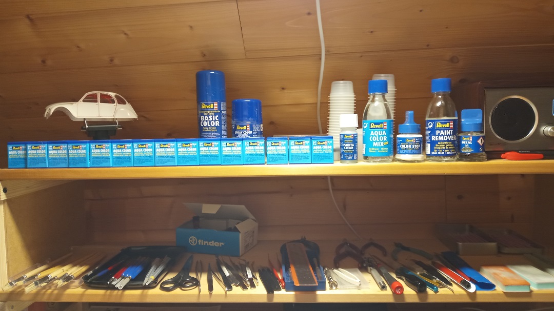 Na und in meinem kleinen Chaos komme ich eigentlich ganz gut zurecht. Da überall Schleifpapier, Pinzetten usw. liegen, brauch ich nicht lange suchen...