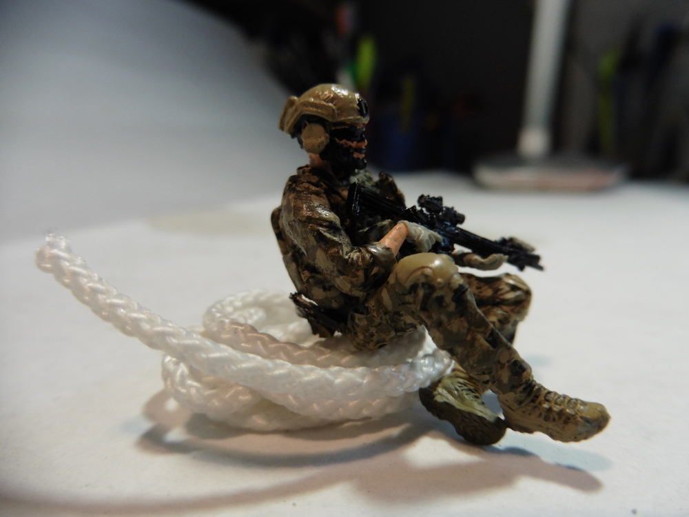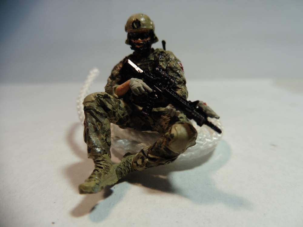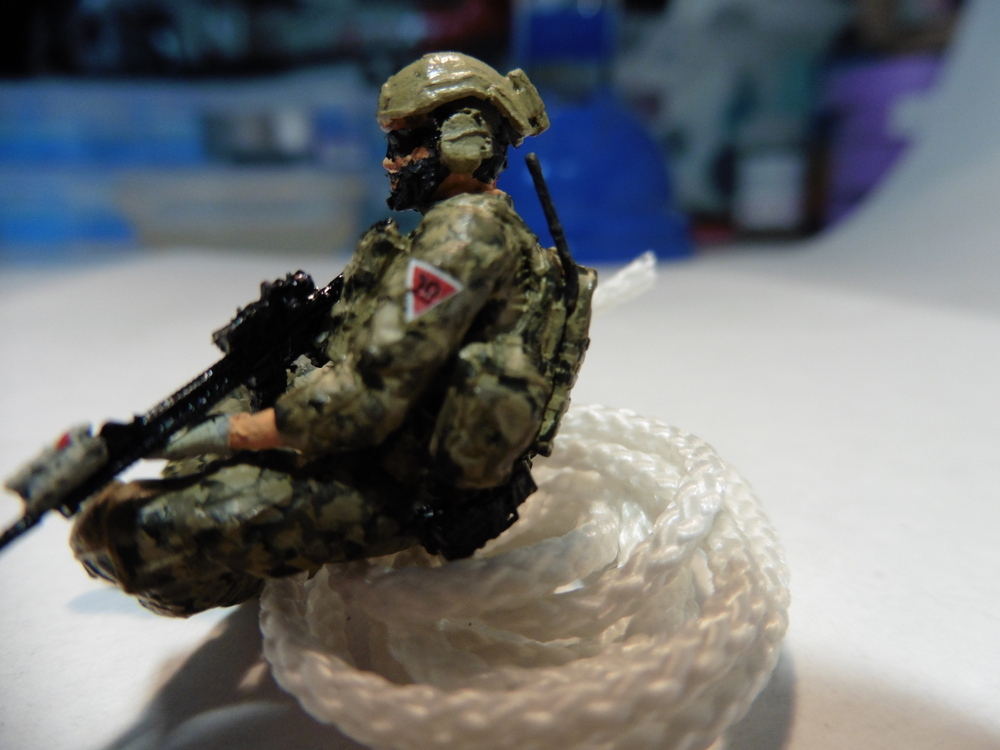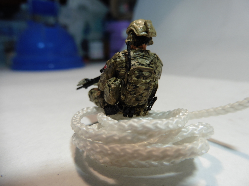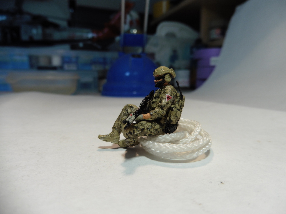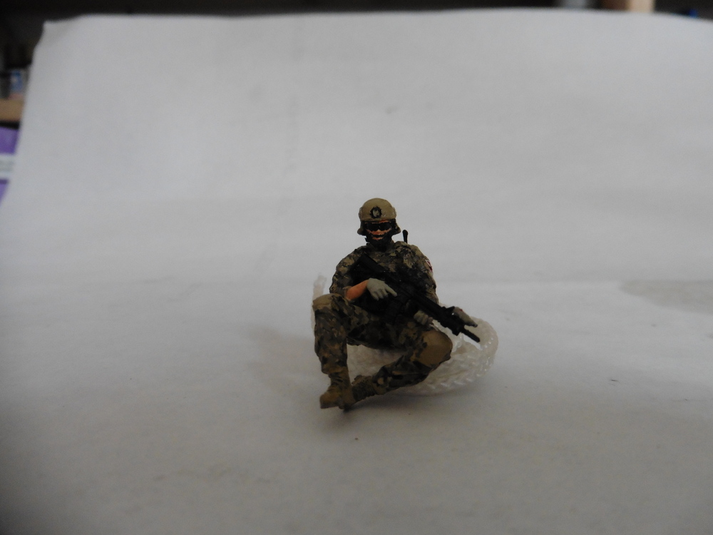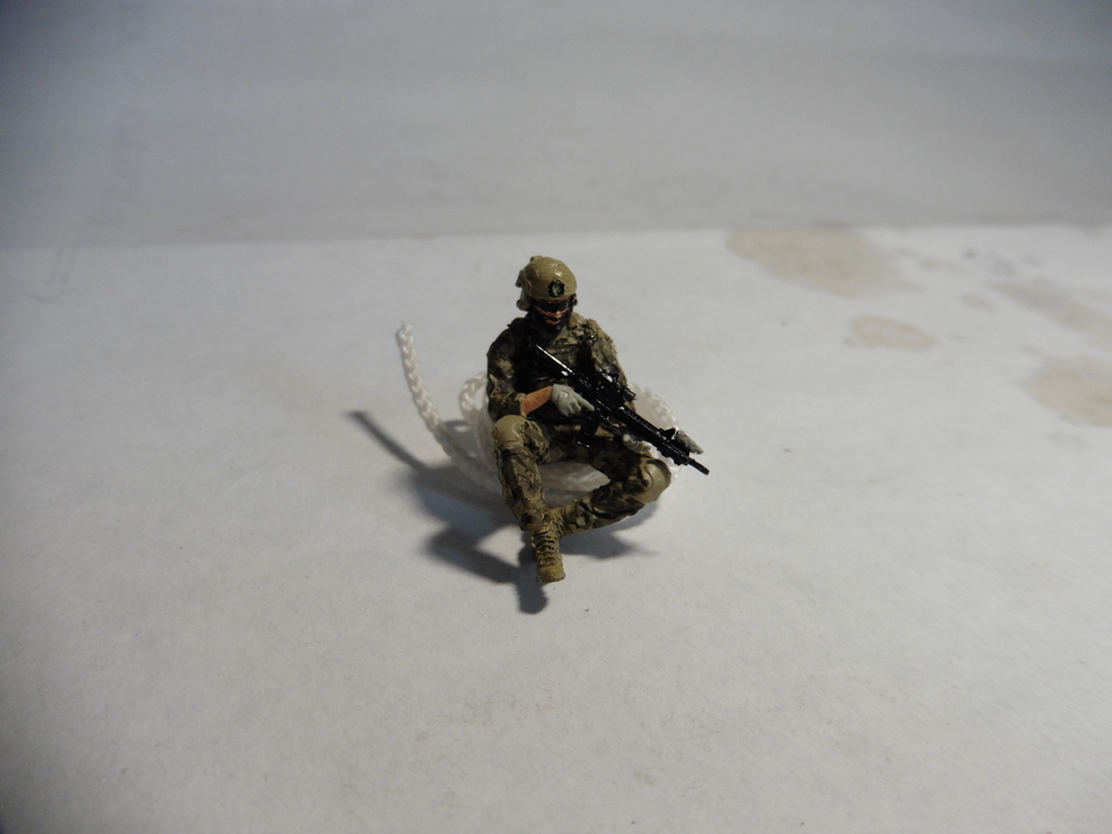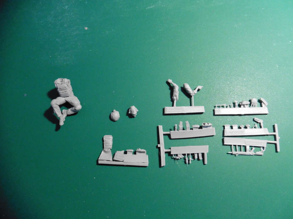 Die Resin Figur hat fast mehr Teile als der Heli :D Allein die M4 besteht aus 4 Teilen . Der ganze Rest kommt an den Mann.