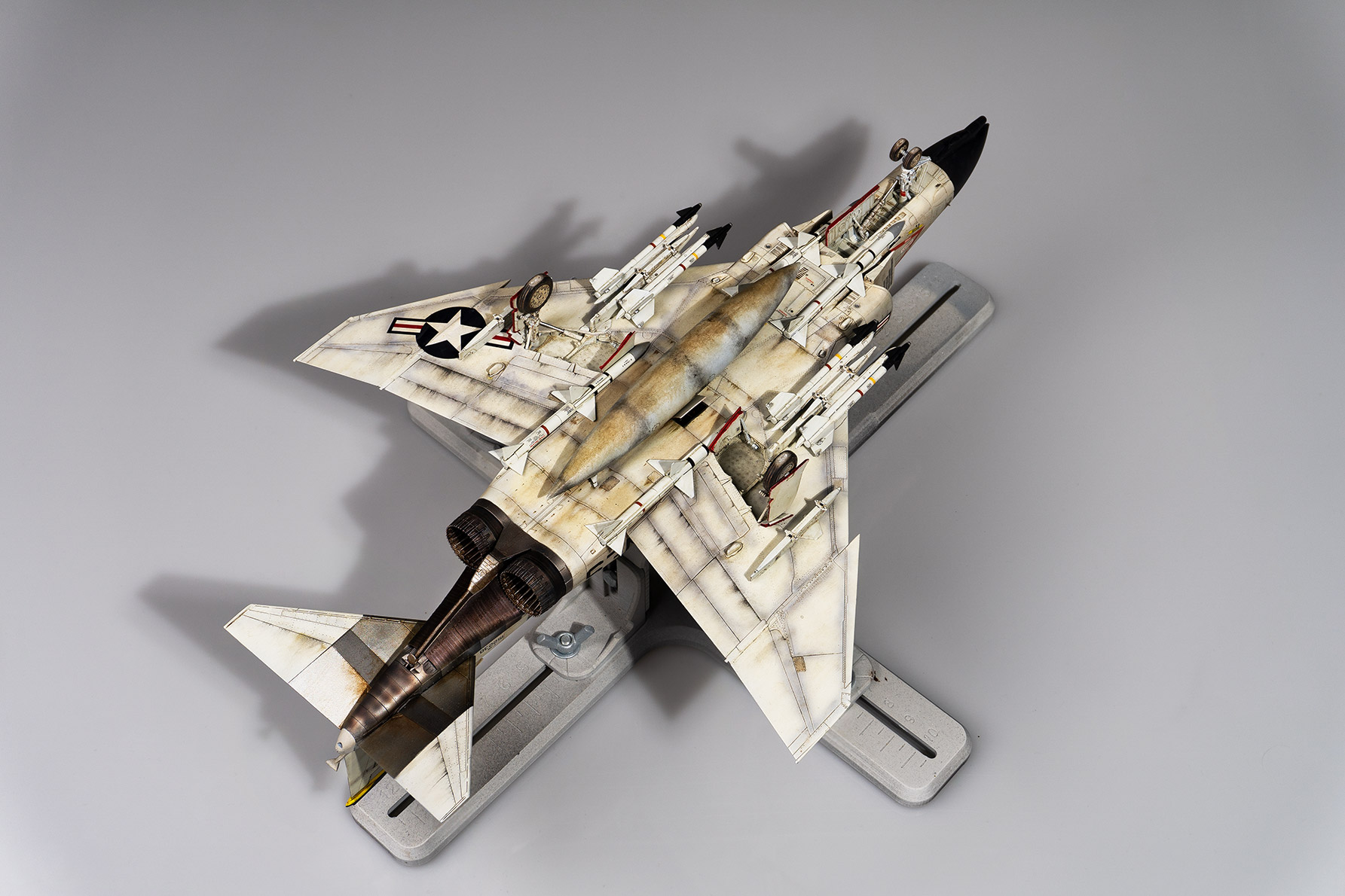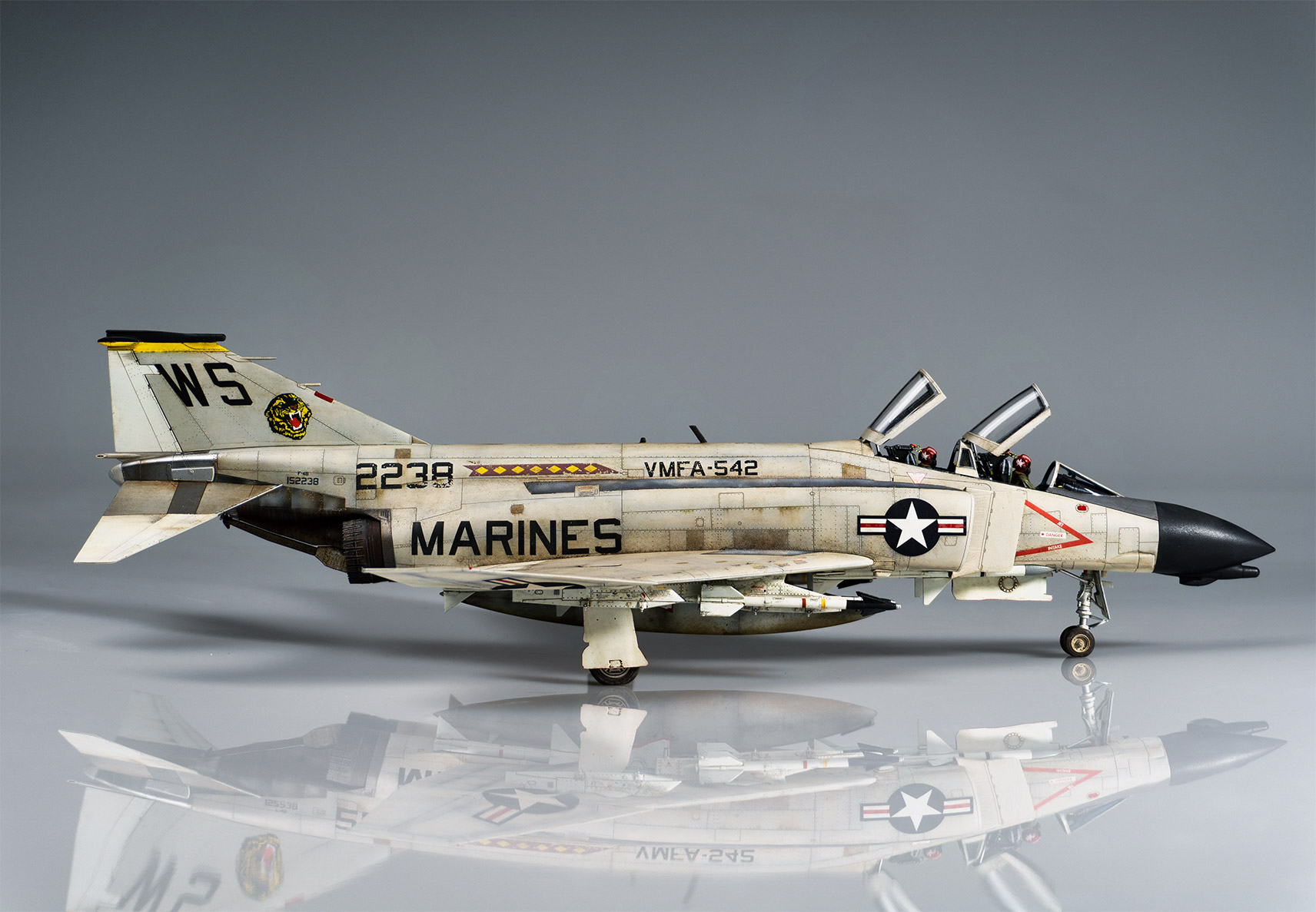 heute präsentiere ich euch meine soeben fertiggestellte F-4 Phantom II. Verwendet habe ich den Tamiya Bausatz mit ein paar Aftermarket Teilen (Decals und Fahrwerk von Eduard, Exhaust von Reskit, Schweiss produziert von mir selbst). Da ich das Baby in ein Dschungle-Diorama einbauen möchte, habe ich mich dazu entschieden eine "Marines" Version zu bauen, welche damals in Da Nang stationiert war. Nichtsdestotrotz, 100% historisch korrekt ist es nicht (und das ist auch nicht wirklich mein Ziel...).