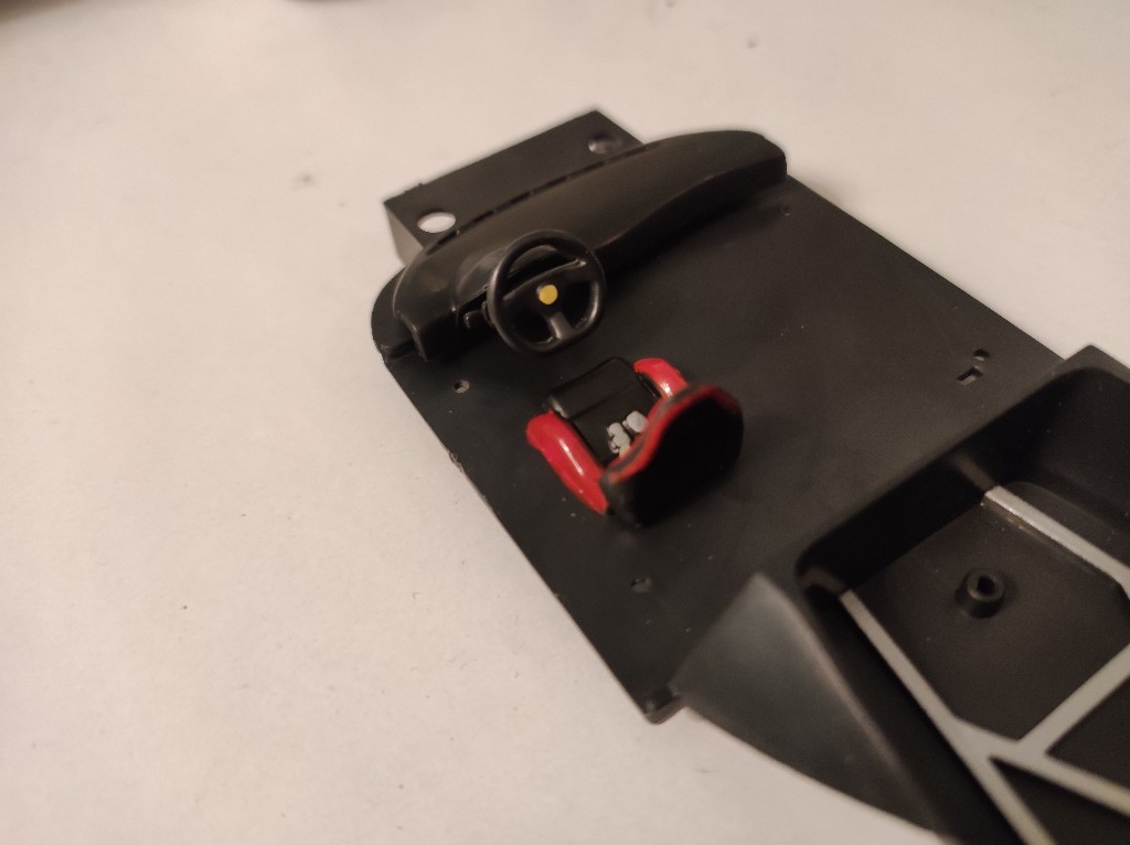 Dann wurde das Armaturenbrett zusammen gesteckt, leider ist hier lediglich das Lenkrad Recht gut zu sehen. Hier gab's auch ein Klecks Gelb