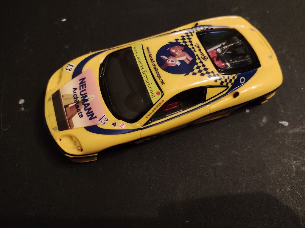 Der Ferrari 360 erschien im Frühjahr 1999 und wurde bis Anfang 2005 gebaut. Der Motor leistet 431 PS und das Gewicht liegt bei 1365 kg und ist damit innerhalb von 4,5 Sekunden auf 100 km/h und erreicht 296 km/h Spitze. Der 360 ist der Meistverkaufte Ferrari in der Geschichte des Unternehmens. Das Fahrzeug stellt den Ferrari das Fahrzeug von Norbert Walchhofer im Jahr 2003 dar. Walchhofer er wurde am 1. Juli 1952 in Österreich geboren und nahm zwischen 2000 und 2005 an der europäischen Ferrari Challenge teil. Er nahm noch bis 2014 an verschiedenen Rennen teil und wechselte 2014 als Teamleiter der DF-1-Racing-Team in die EuroNASCAR. Er starb im März 2022 und blickte auf eine lange Sportkarriere im Renn- und Basketballsport zurück. Ein Foto von seinem Auto ist mir leider nicht bekannt.