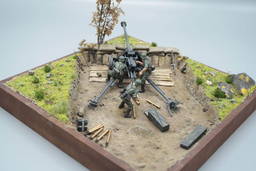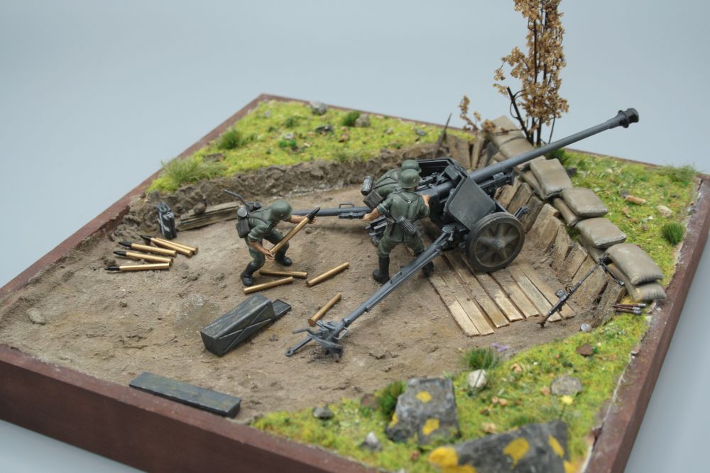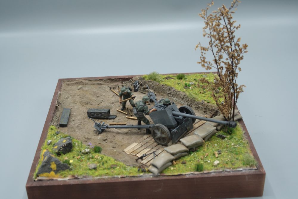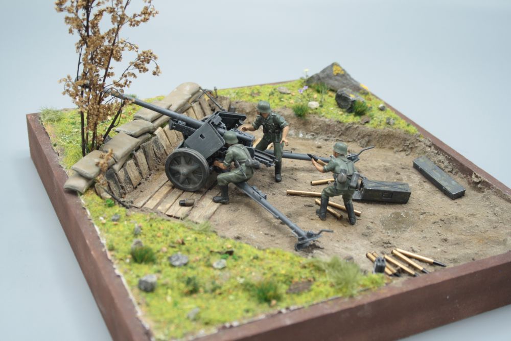 Verwendet wurde die 7,5 cm PAK von Tamiya mit den gehörigen Figuren.