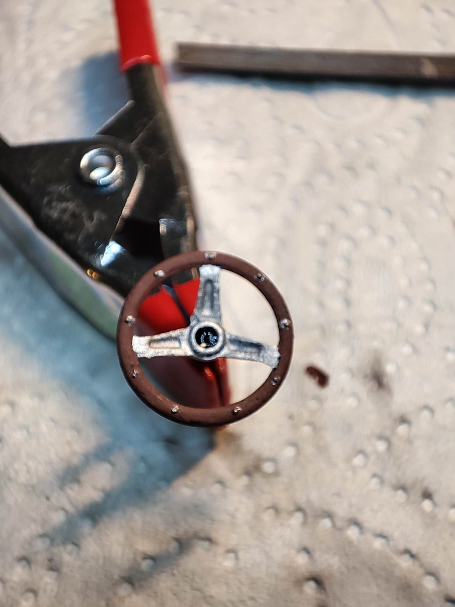 Er passt zwar nicht mehr hinters Lenkrad, weil der BUS schon etwas länger fertig ist und ich nicht das Dach abmachen möchte, vielleicht sehr viel später mal. Ich finde trozdem das er hier besser aufgehoben ist, als in der Schublade ;)