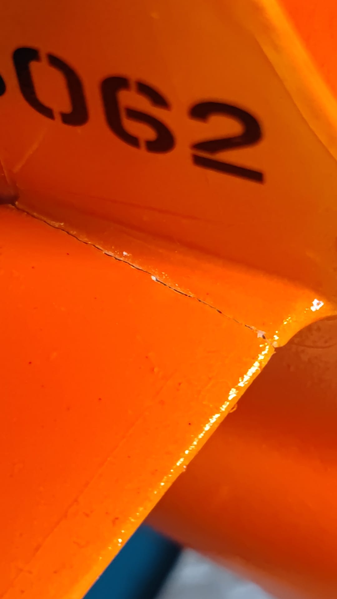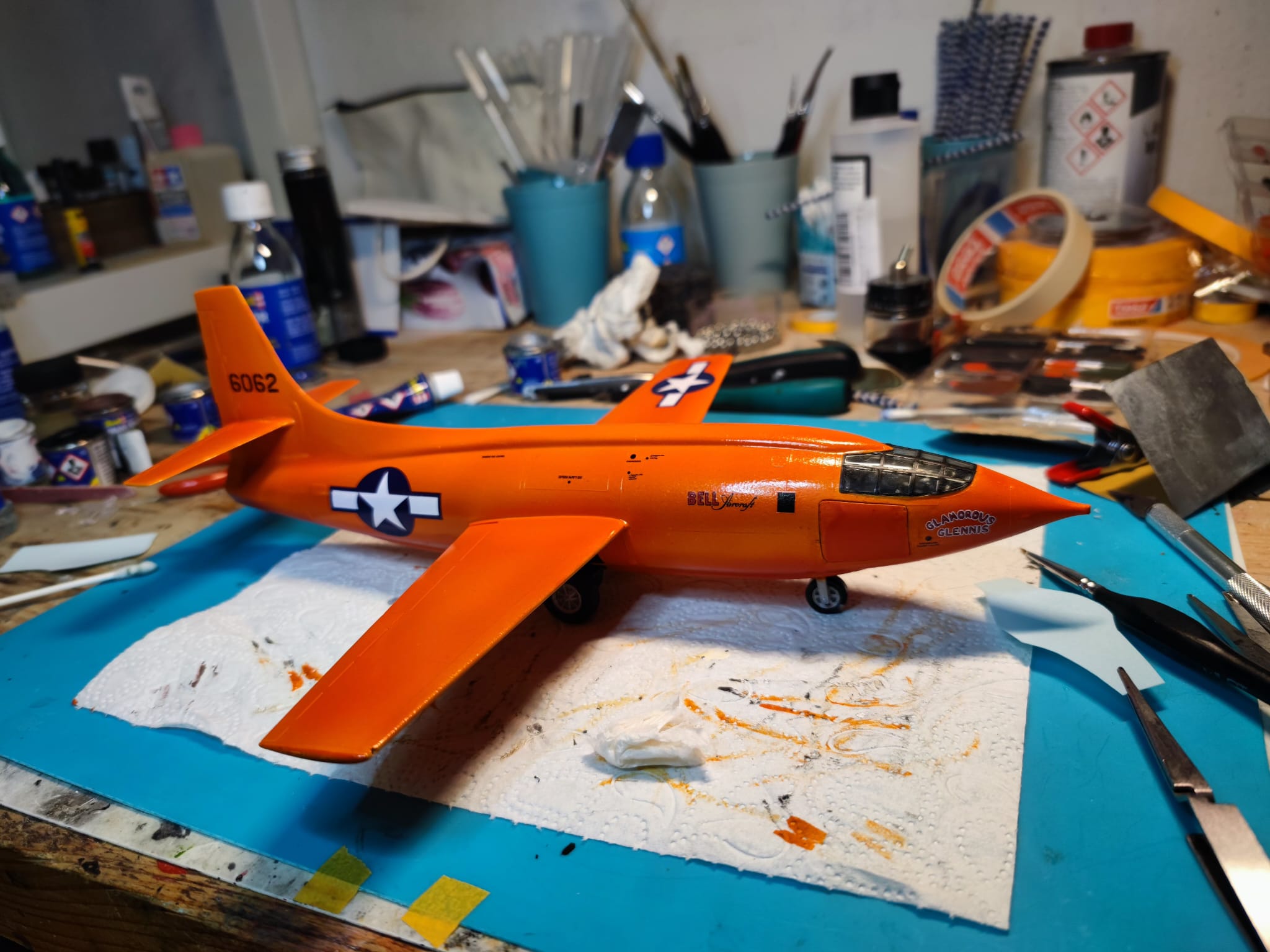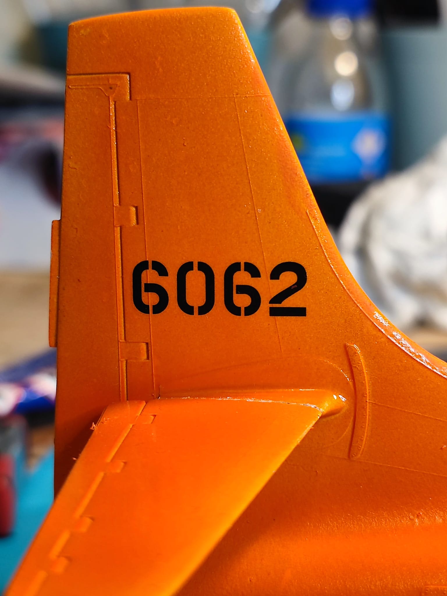 Das Orange ist eine verdammt zickige Farbe. Überall gibt es hellere und dunklere Stellen. Die Luke habe ich mit dem Pinsel gemalt und sieht total anders aus.