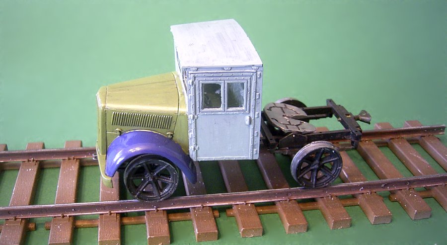 Hier sind das Fahrerhaus und die Schienenräder montiert, der Sattel ist also fertig gebaut, nur noch nicht endgültig bemalt.