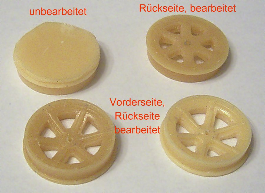Nun ja, da es sich nur um eine einteilige offene Form handelte war auf der Rückseite eine Menge Nacharbeit angesagt, aber es waren ja nur 4 Räder.