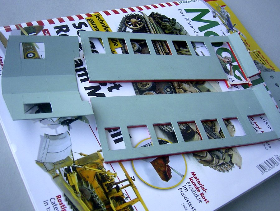 Auch die Seitenwände bestehen nur aus simplen rechteckigen Polystyrolplatten, nix Besonderes, das kann Jeder.