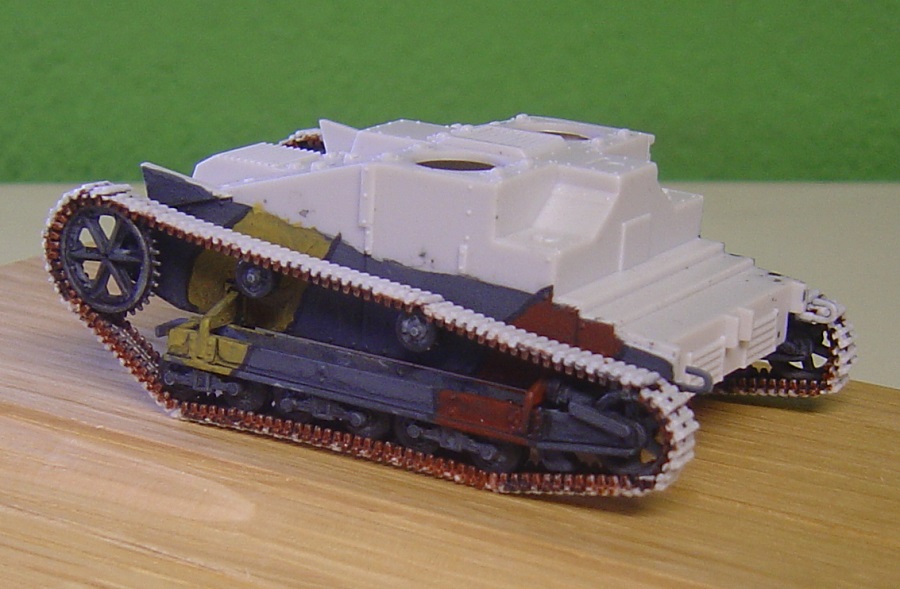 Entgegen meiner normalen Vorgehensweise habe ich die Laufwerkteile schon am Rahmen bemal.