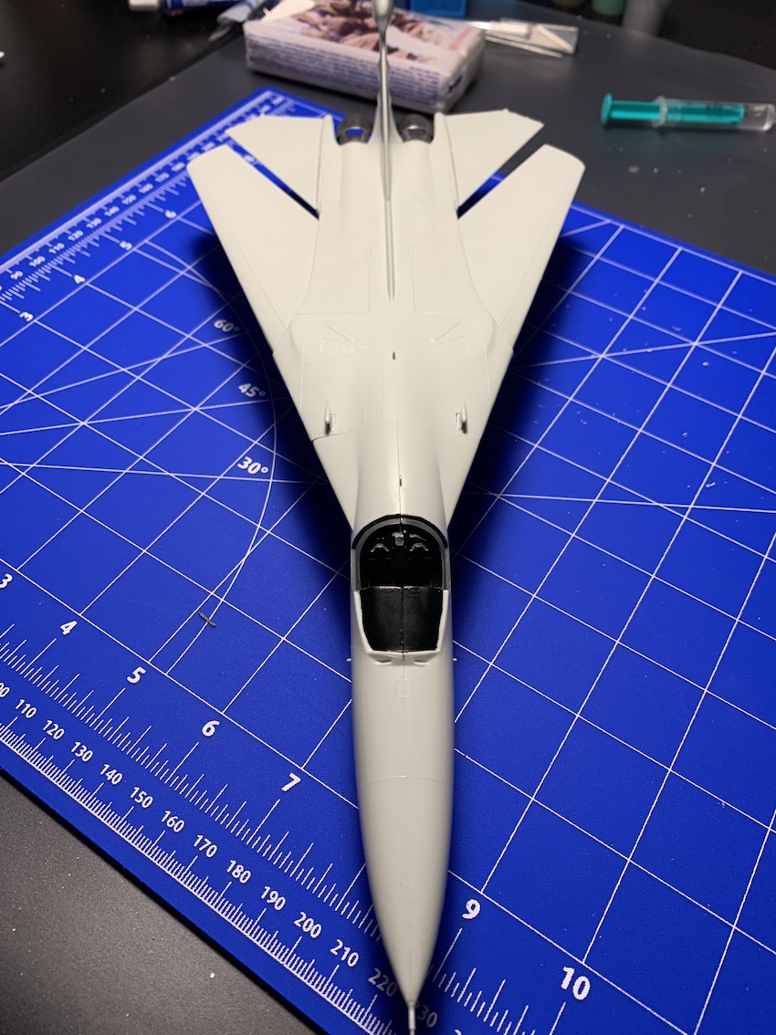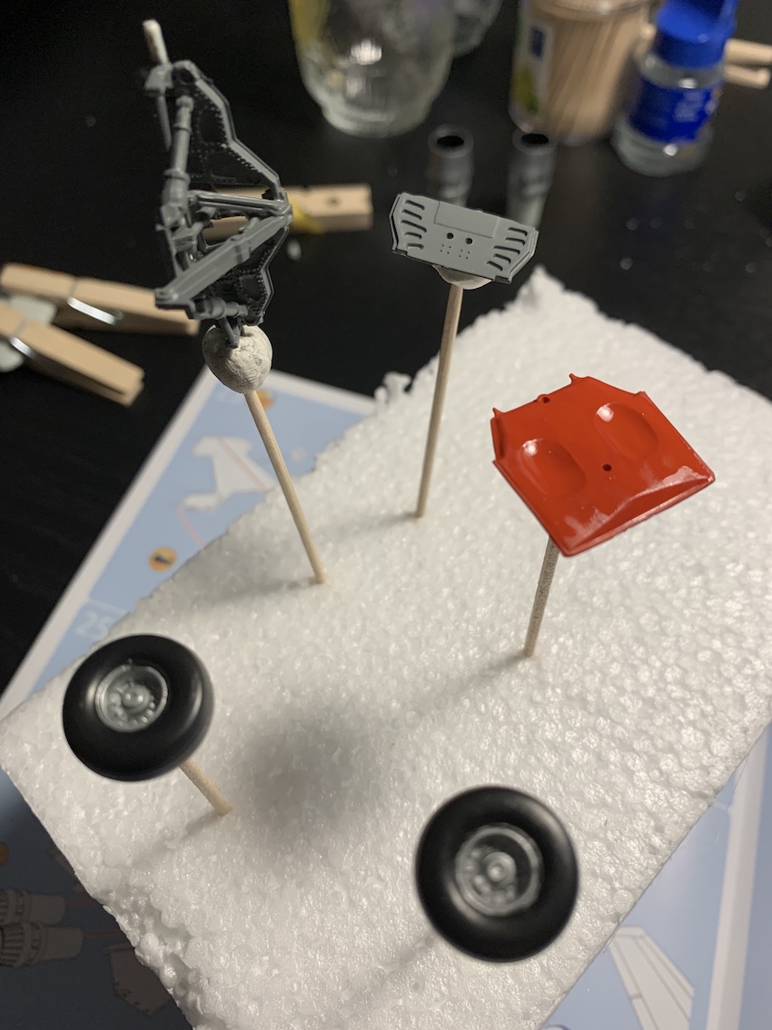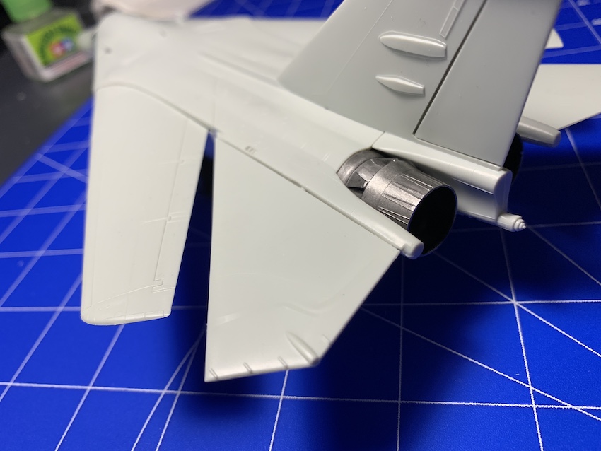 Ich denke, dass ich zu schnell zu viel wollte und habe dadurch die Reihenfolge nicht gut eingehalten. D.h. Kleinteile wie Antenne, Reifen und Fahrwerk schon dran geklebt oder durch die Triebwerke stellen zum lackieren verdeckt und unzugänglich gemacht.