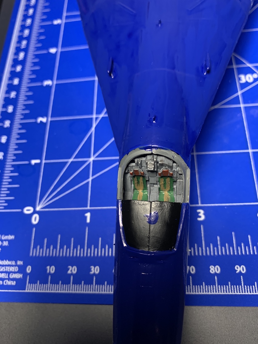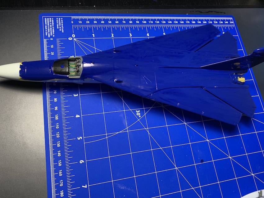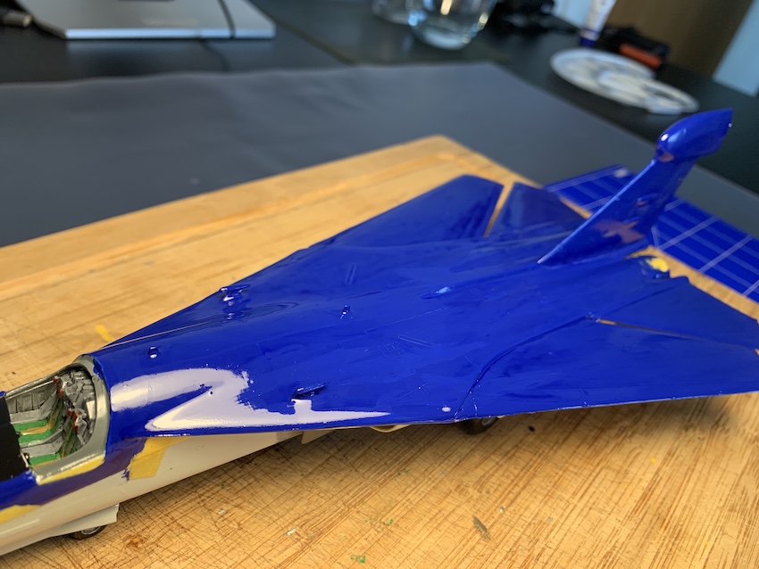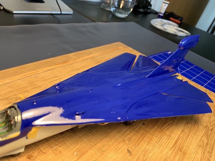Für den Flieger wollte ich Ultramarine Blau, glänzend an der Oberseite ausprobieren. Die Unterseite sollte Grau Matt werden.