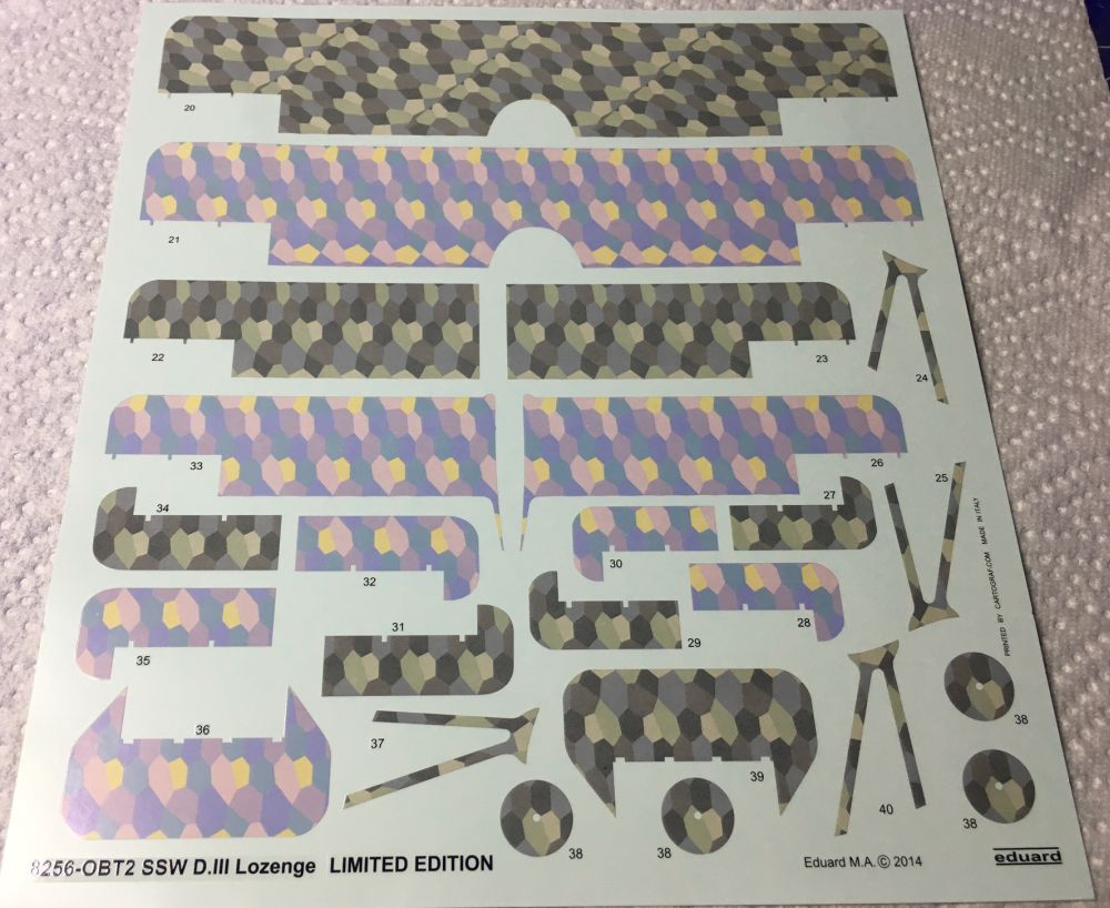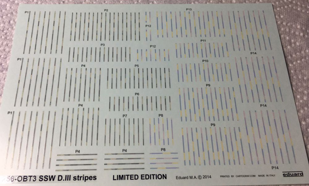 Die Decals von Cartograf sind von hoher Qualität und umfassen verschiedene Lorenzzo Tarnungen. Selbst großer Bogen mit Decals für die Rippenbänder gehört dazu, natürlich mit gesonderter Anweisung.