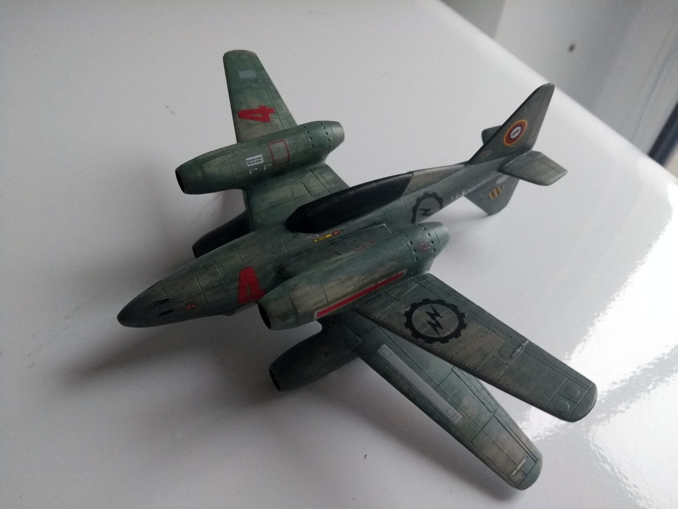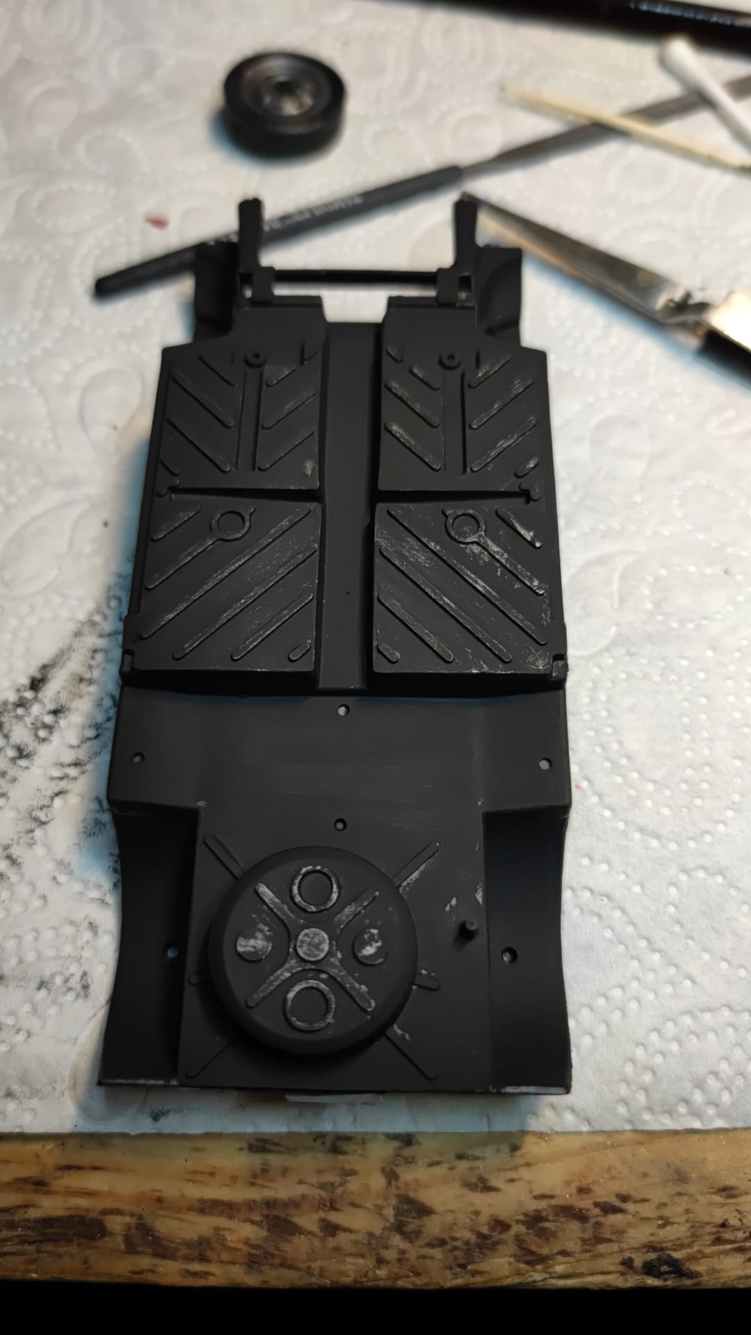 Nachdem die versuchte Camo total daneben ging haben wir extrem washing betrieben und die Kiste gerettet. Danke an meine Frau die mit der Anwendung von Laboralkohol und Wasser die drei Farben Acryl in diese abgeranzte Space War Oberfläche verwandelt hat . Als Nächstes dann ordentlich decals drauf, mal gucken ob wir jetzt auch noch eigene herstellen oder nur altes Material verwenden.