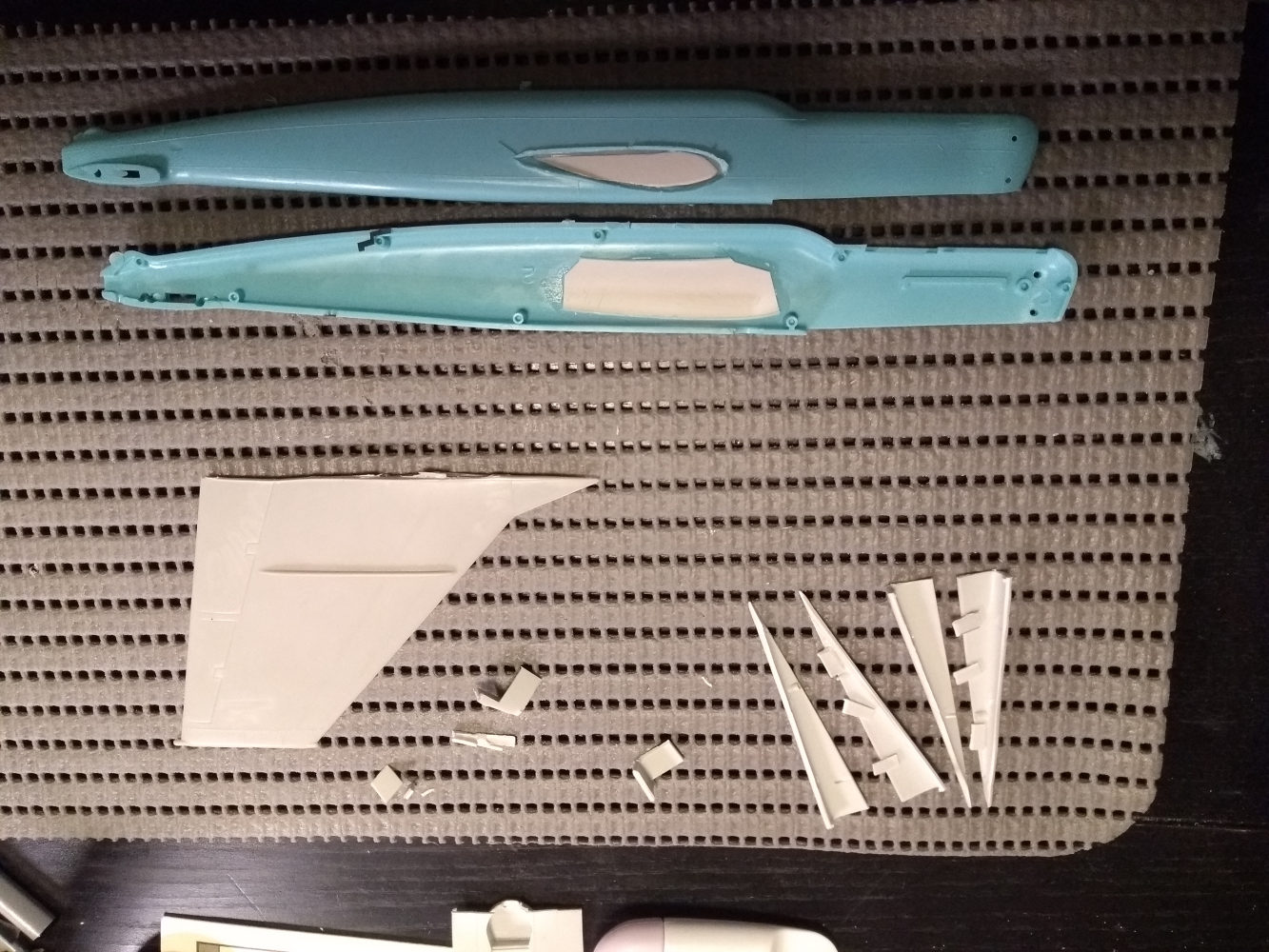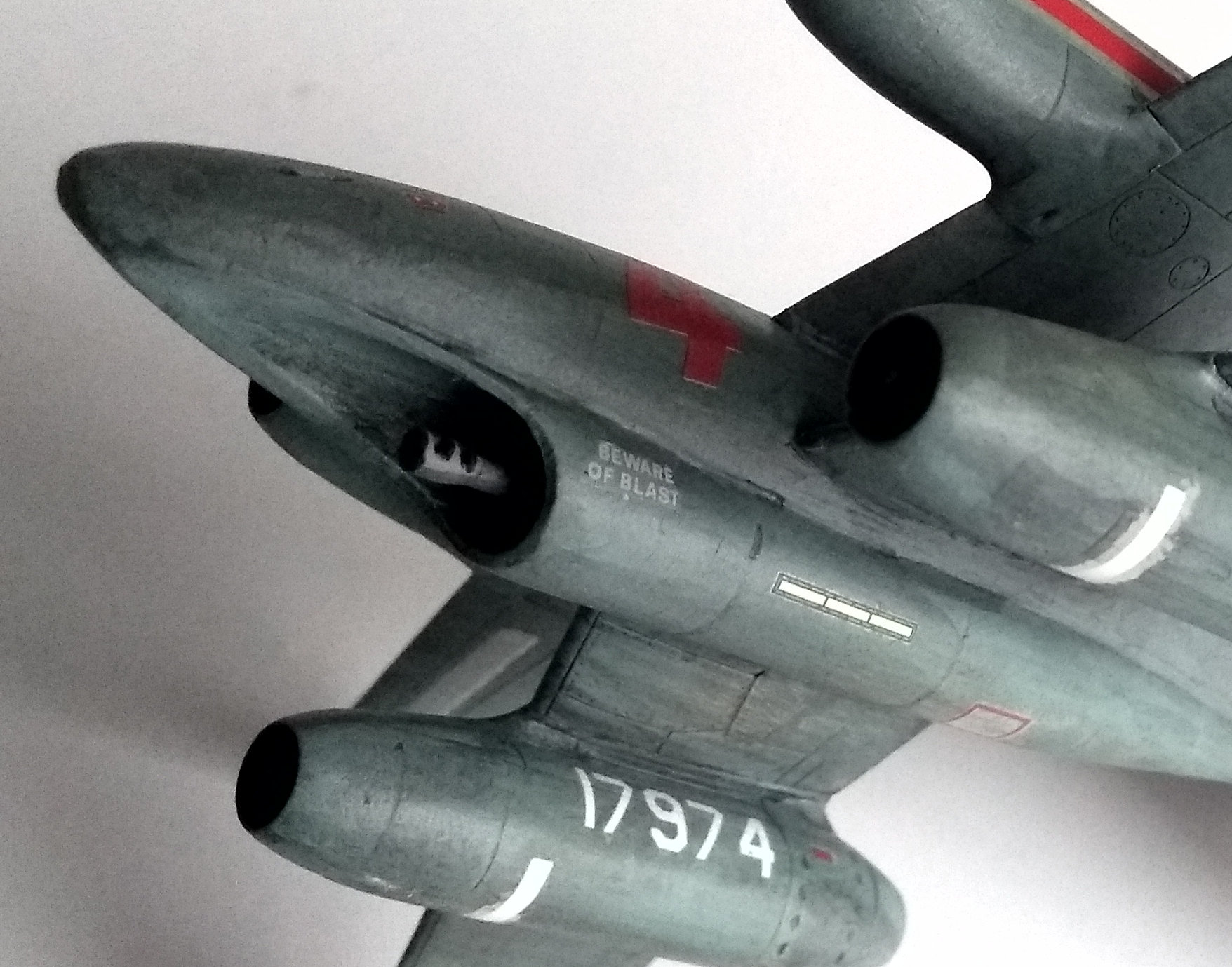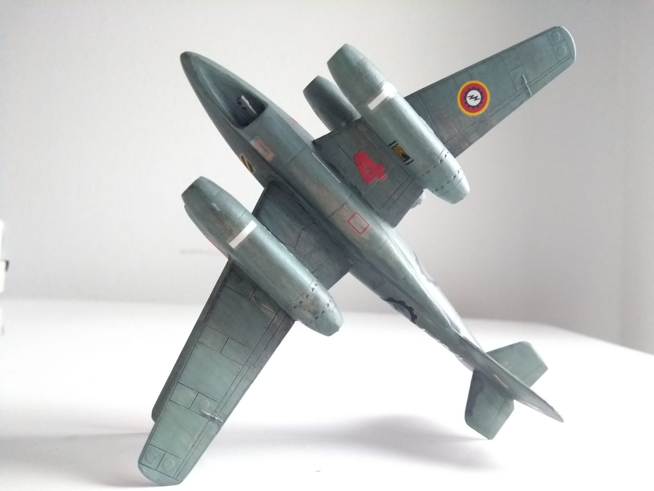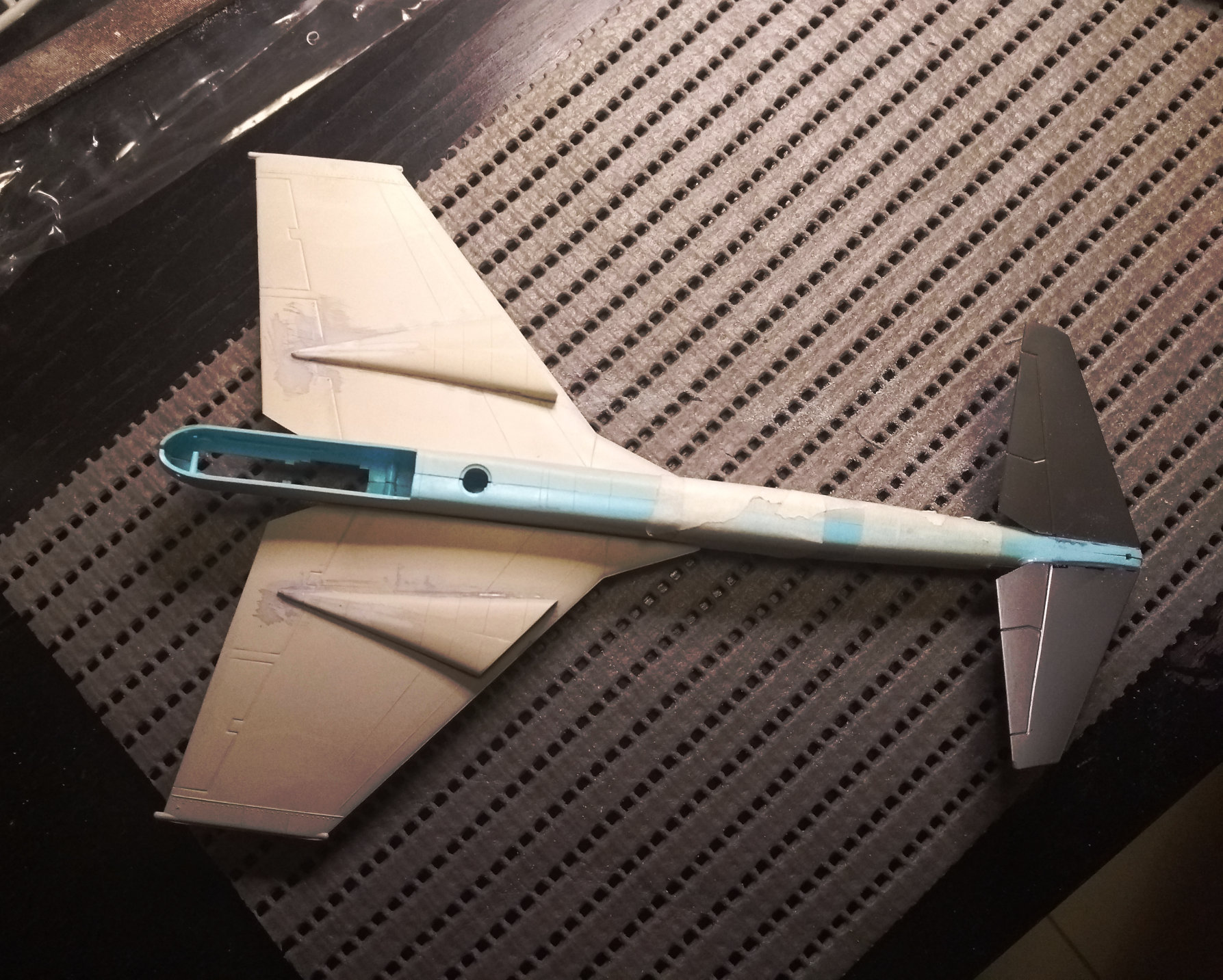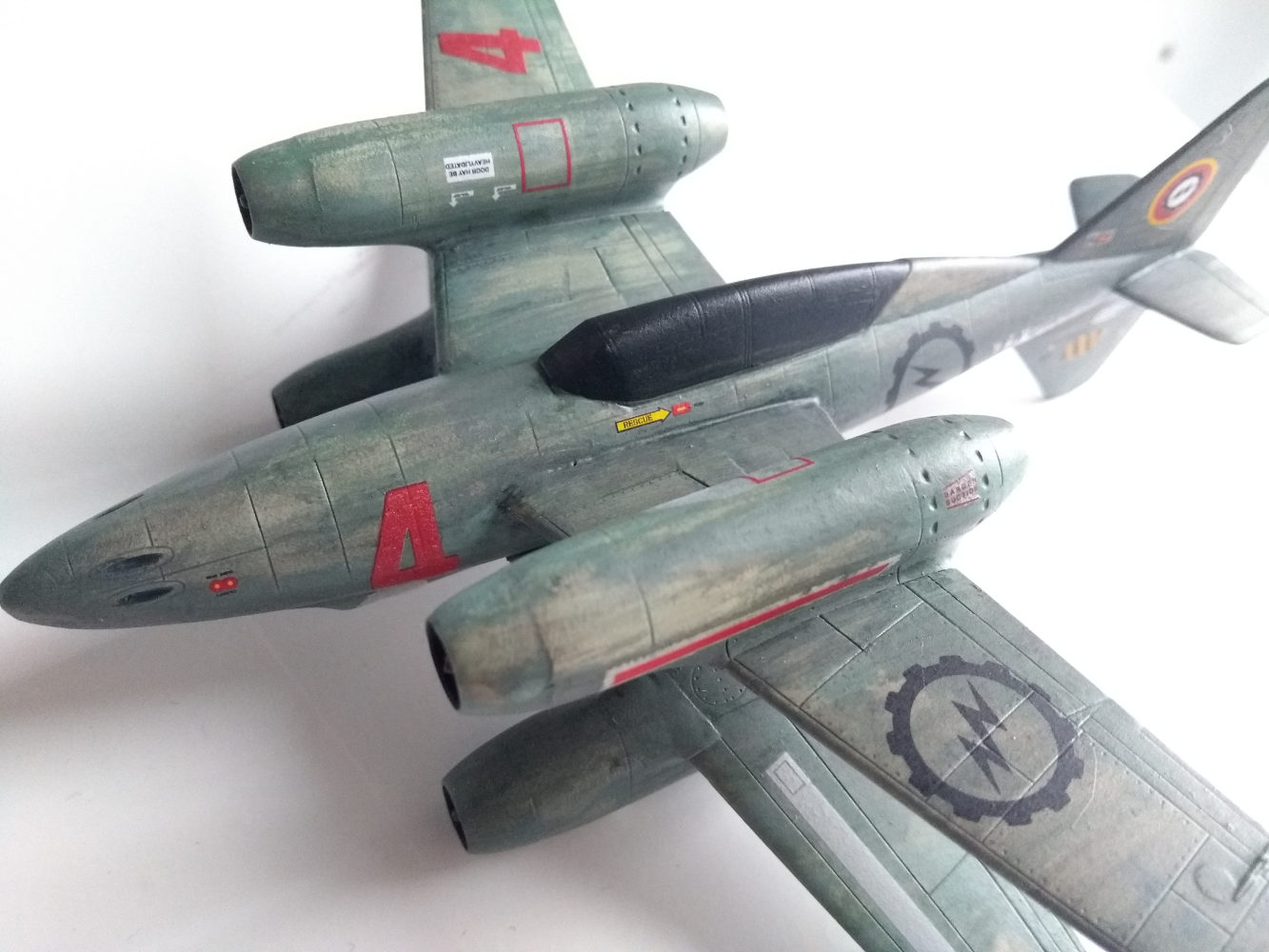 Aus den 2 zertrennten Bauchsegmenten der letzten 262 ( x Wing ) habe ich prima intakes gebastelt und auf dem Flügel einer Mig 31 platziert die dann am Rumpf einer He219 befestigt und mit Canards aus dem Leitwerk einer 747 ein Flugzeug ergeben .
