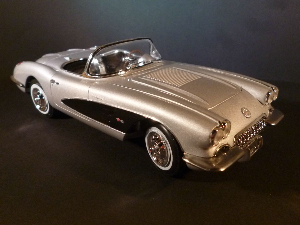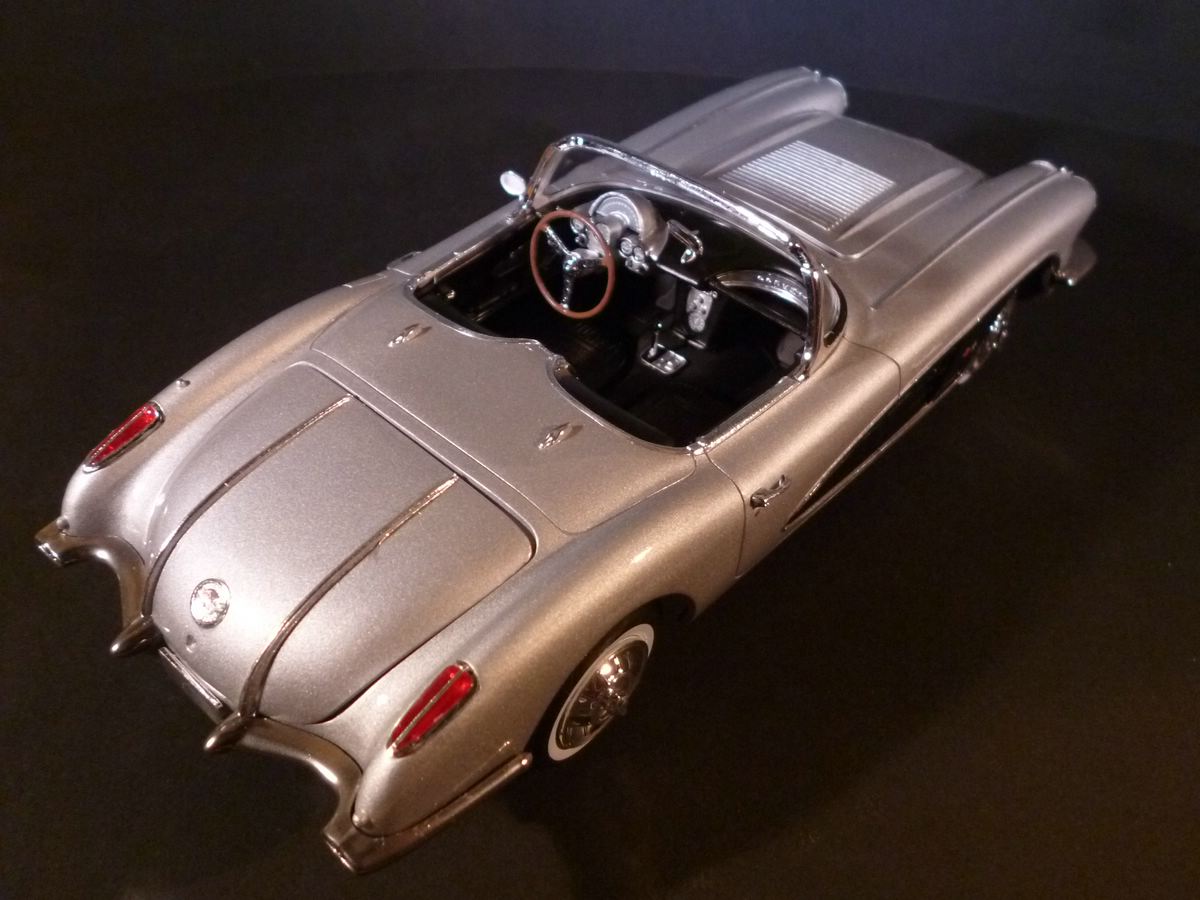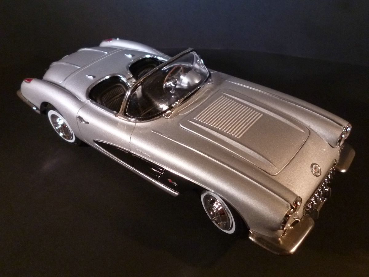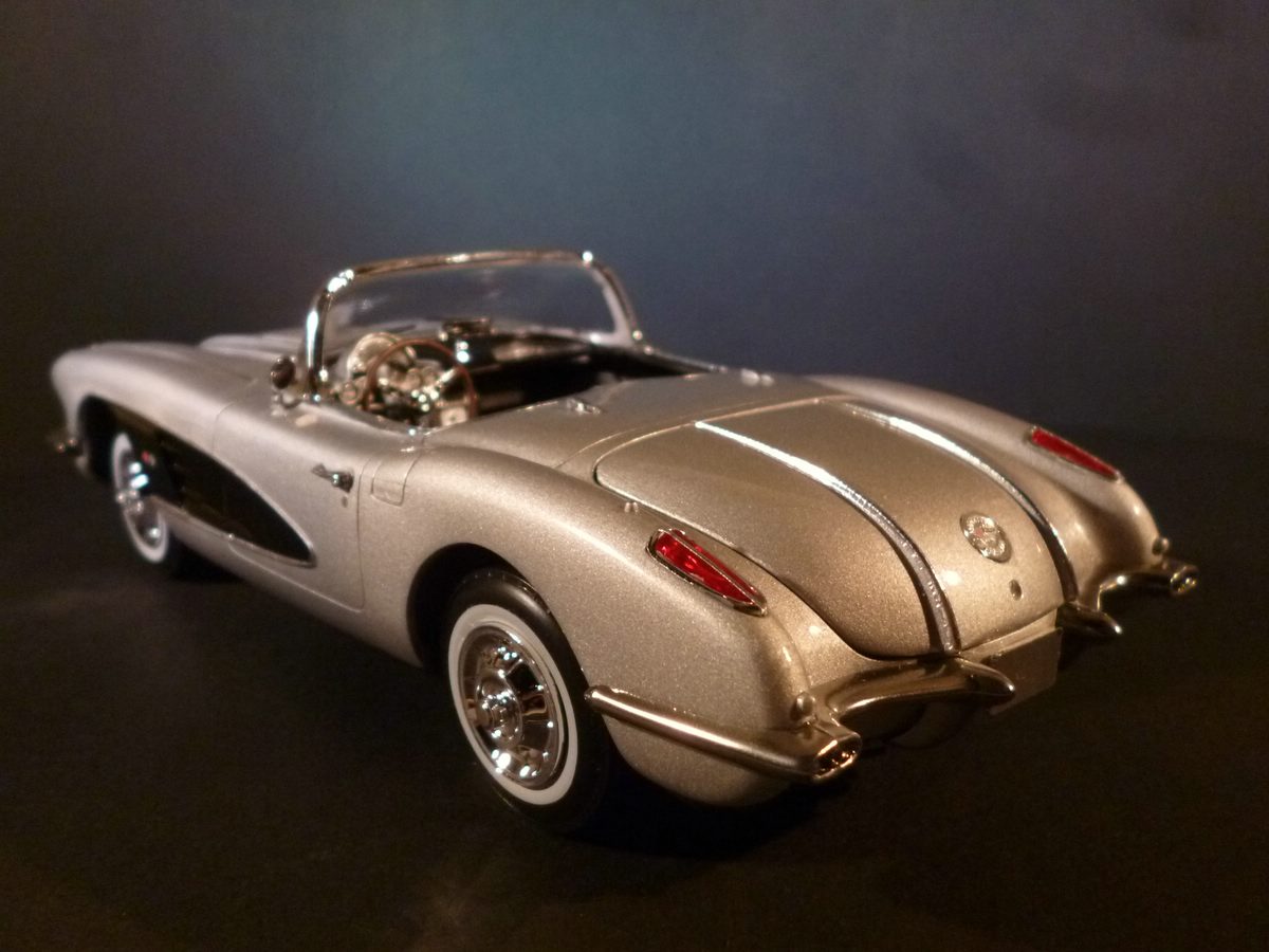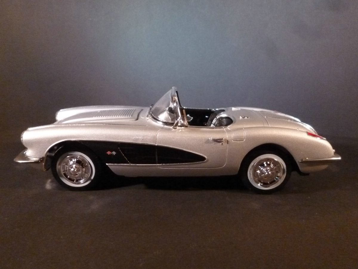 Mit dieser C1 gesellt sich eine dritte Corvette der ersten Generation in das Regal. Die Unterschiede zur 1957er Corvette sind deutlich. Wie ziemlich alle Amerikaner aus dem Jahre 1958 wurde die Corvette ebenfalls mit Doppelscheinwerfern versehen. Waren diese doch erst ab 1958 gesetzlich erlaubt. Schon aufgefallen? Ziemlich alle Hersteller veränderten ihre Fahrzeuge im Jahre 1958 an der Front