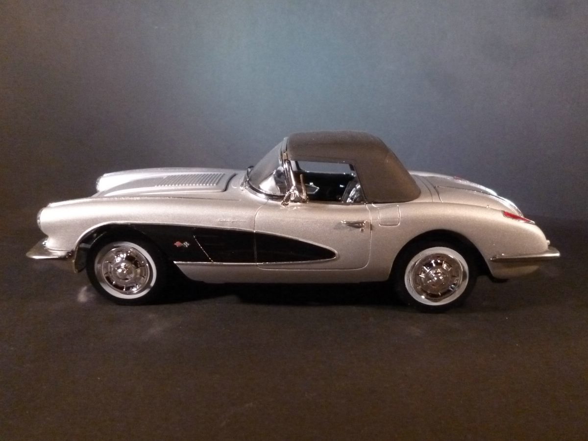 Mit diesem Modell startete alles. Ich bekam es geschenkt. Wie so oft wollte ich nicht was Übliches lackieren. Also fiel rot mit weißen Flanke aus. Stattdessen wurde sie eben silber mit schwarzen Flanken. Sehr schön. Da ich eine 2015er Corvette von Chip Foose auch in dieser Farbkombination hatte, sollten fortan meine Corvette für die Collection alle silber mit schwarz werden.