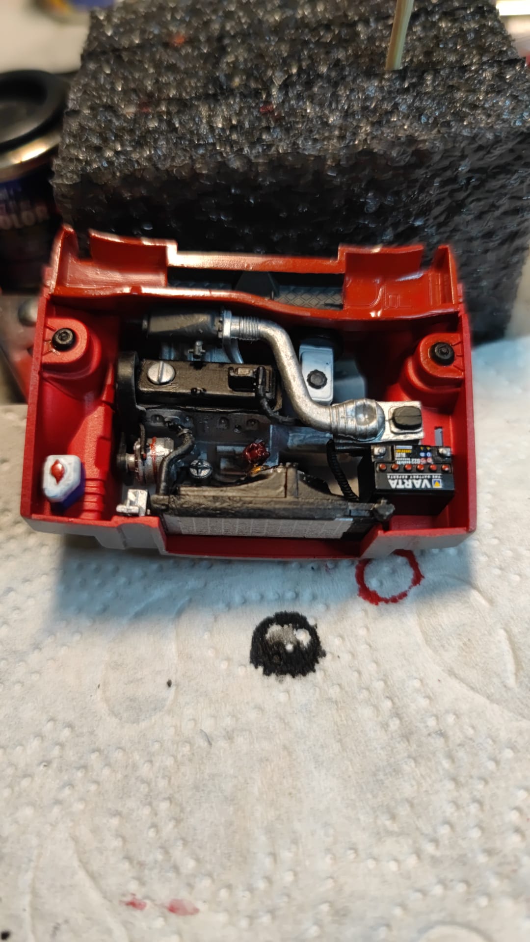 Und wie schon geschrieben, der Zusammenbau war dann viel einfacher, als gedacht. Grundsätzlich wäre aber cleverer den Bausatz so zu konstruieren, dass man die "Regenrinne" und luftfilter erst nach dem Zusammenbau montieren kann.