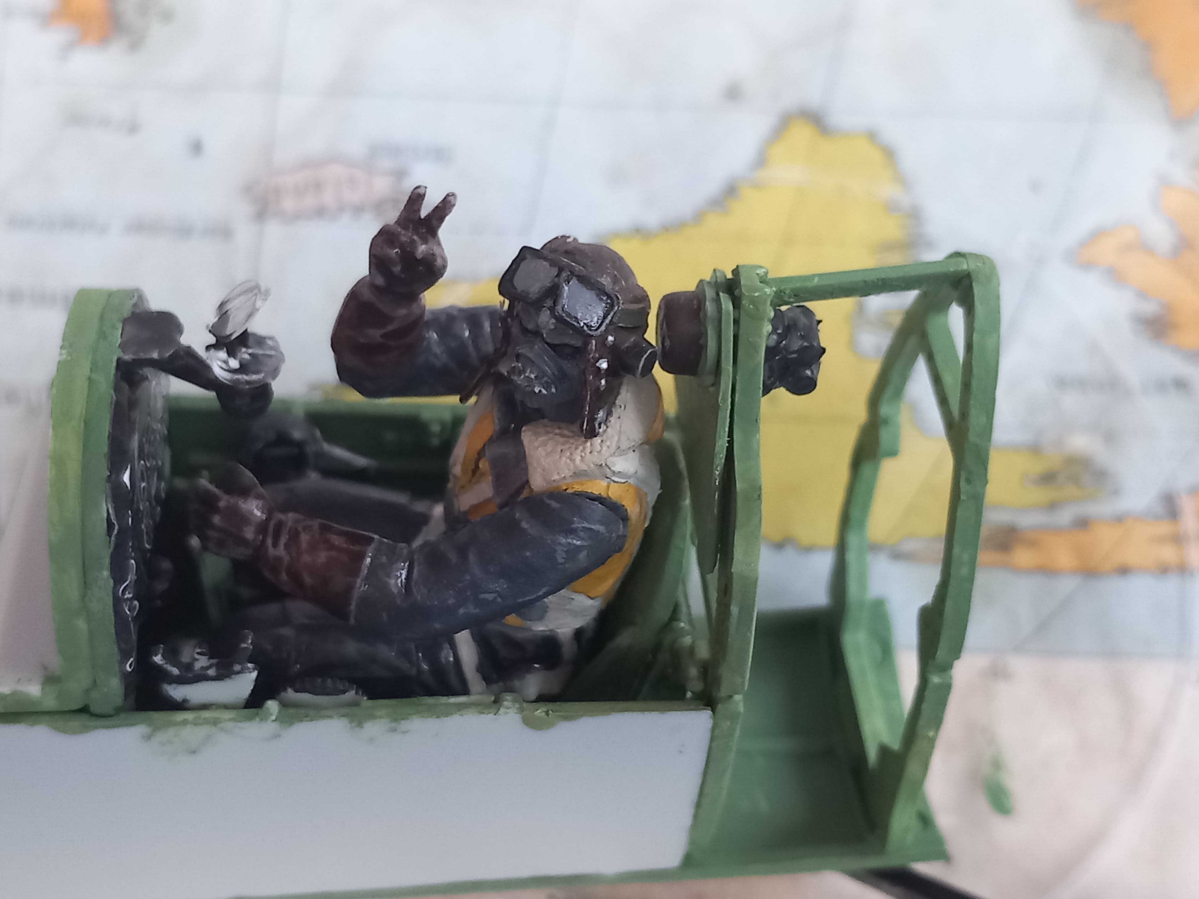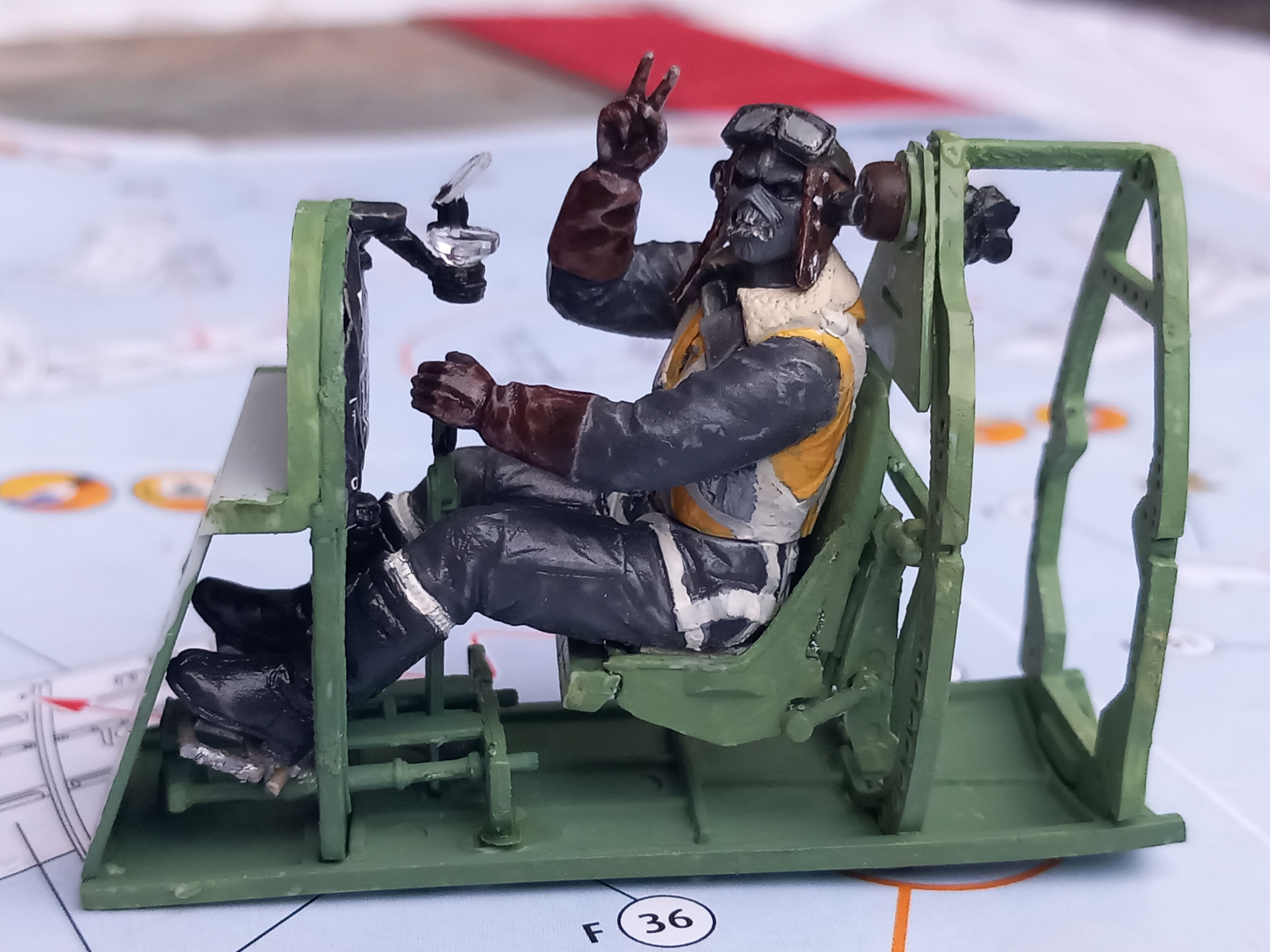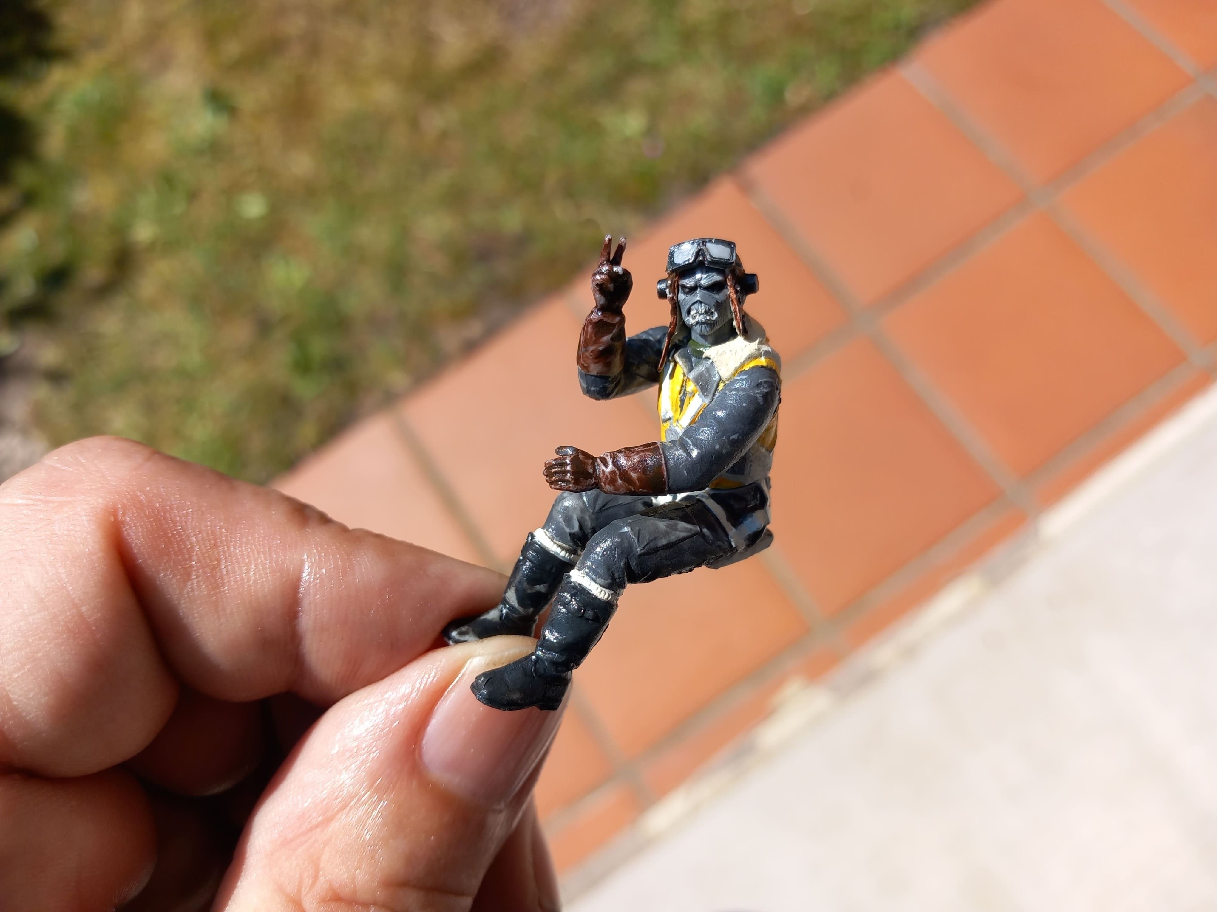 Ich habe jetzt mit dem Bausatz begonnen. Als erstes habe ich den Piloten Eddie bemalt und zusammengebaut.