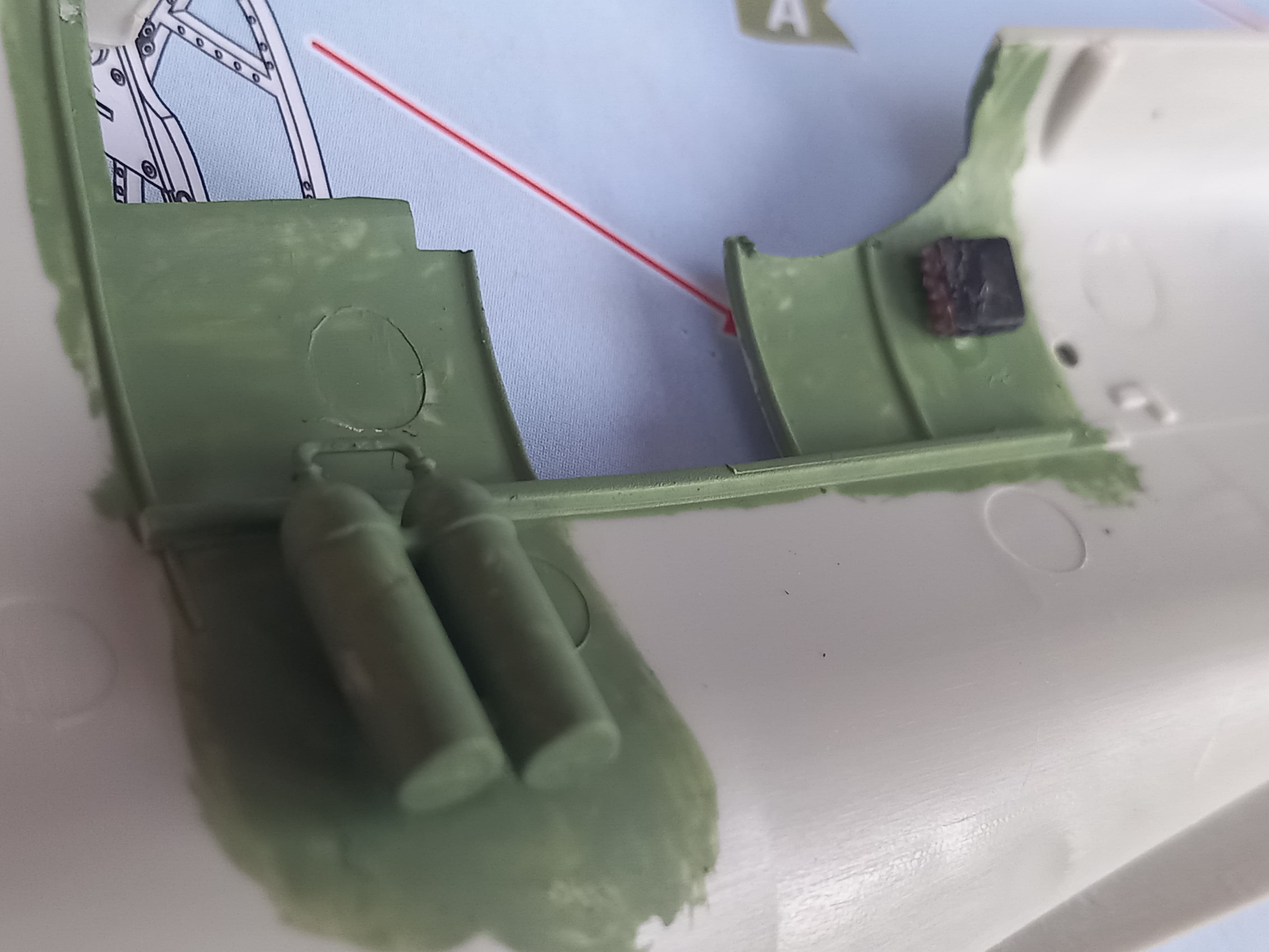 Jetzt ging es ans spachteln :o Ein rotes Tuch für mich.Bisher habe ich immer mit dem Putty von Tamiya gearbeitet. Diese Spachtelmasse ließ sich schlecht bearbeiten und härtete sehr schnell aus.