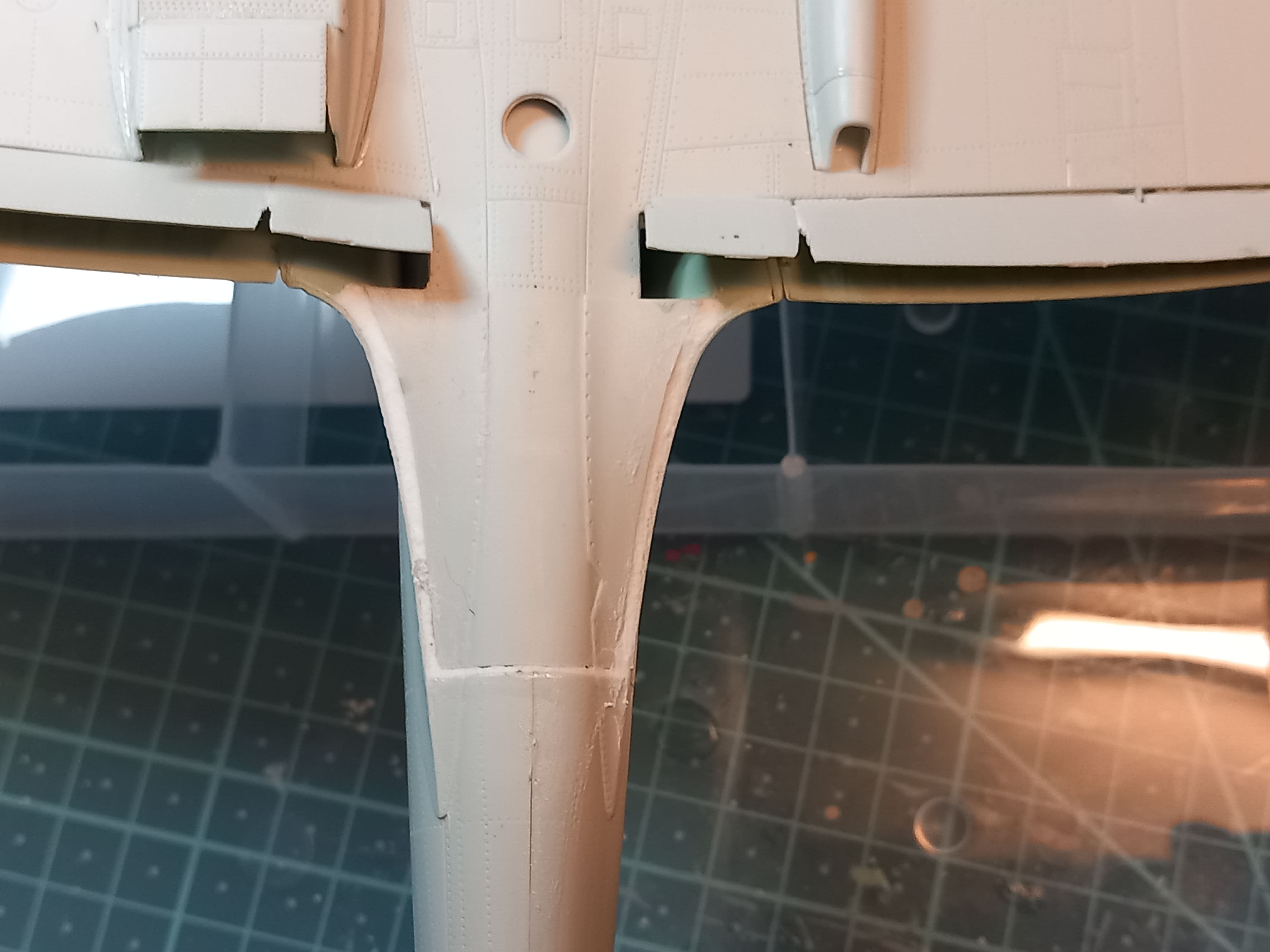 Leider sind am hinteren Ende unten an den Ausläufern der Tragfläche größere Spalten vorhanden.