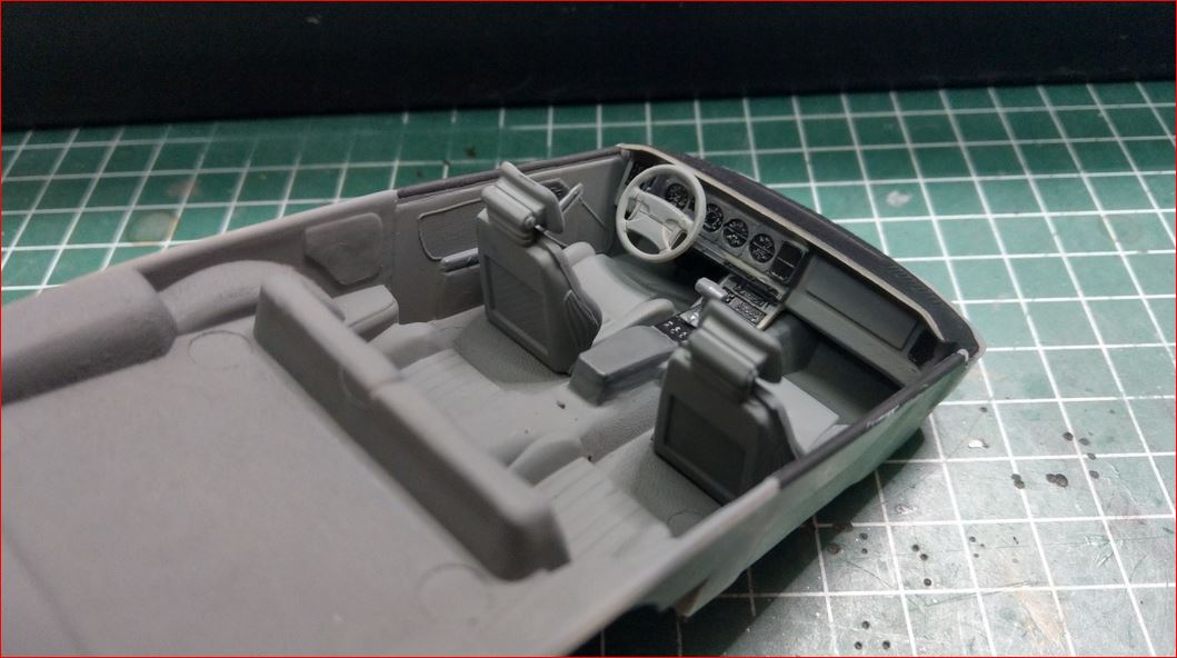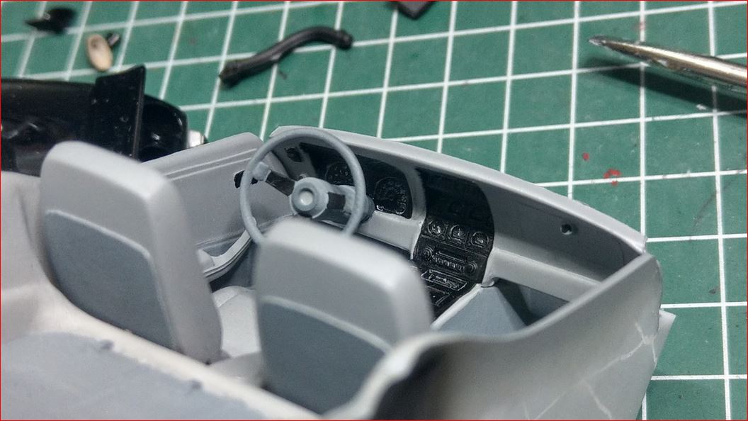 Ist mir nicht aufgefallen. Also bin ich gleich dran gegangen, die Innenausstattung zu komplettieren und noch ein wenig mehr Grau an der Karosserie aufzubringen. Die Rückleuchten sind endlich auch soweit.
