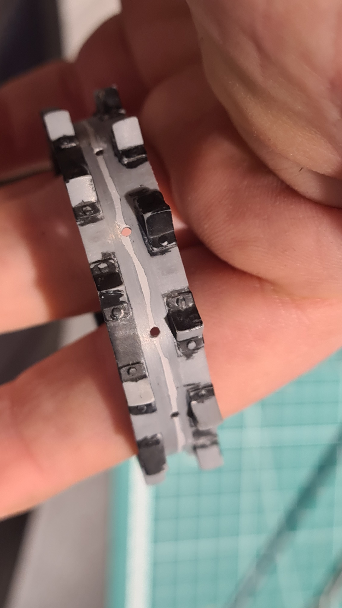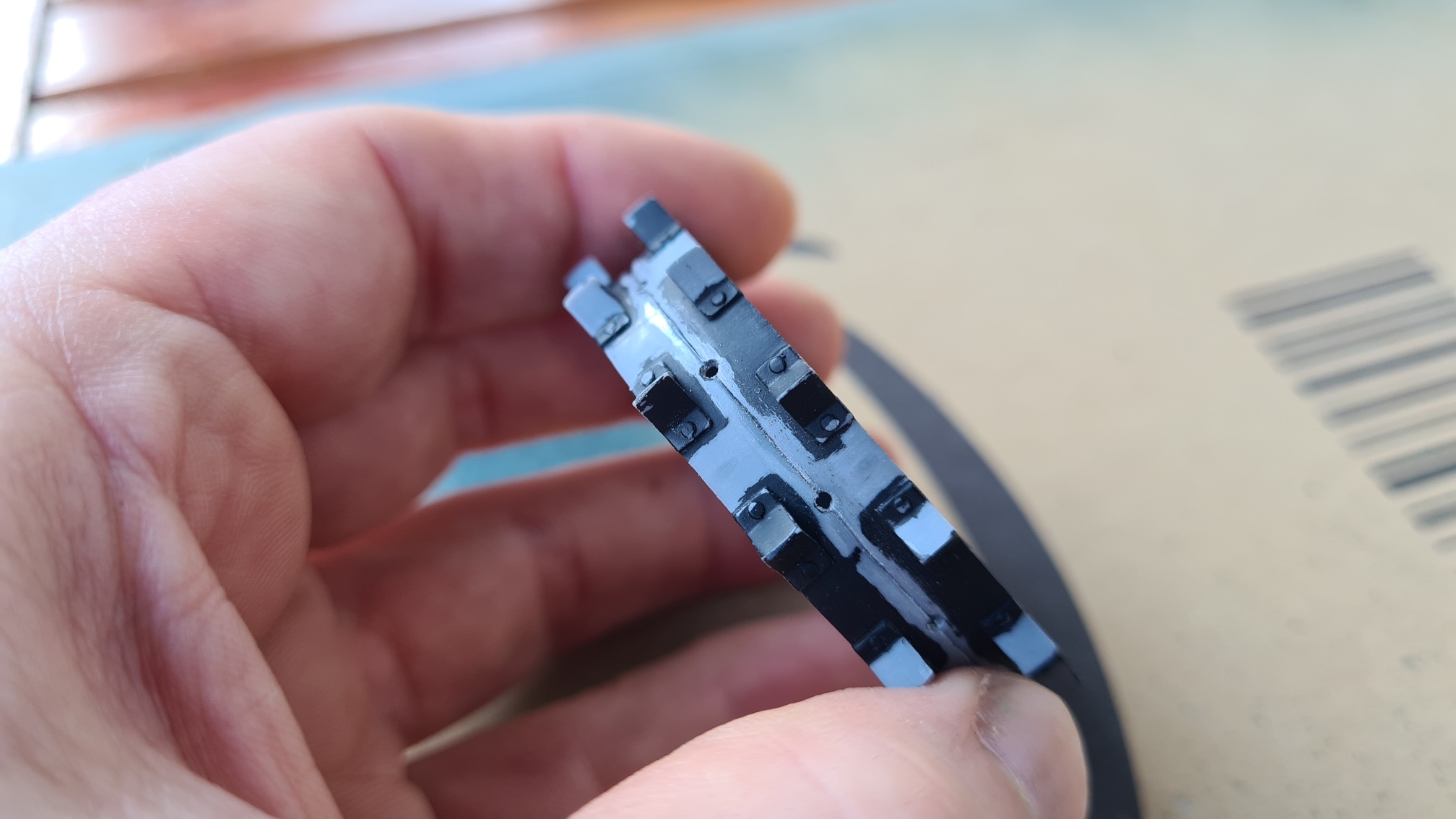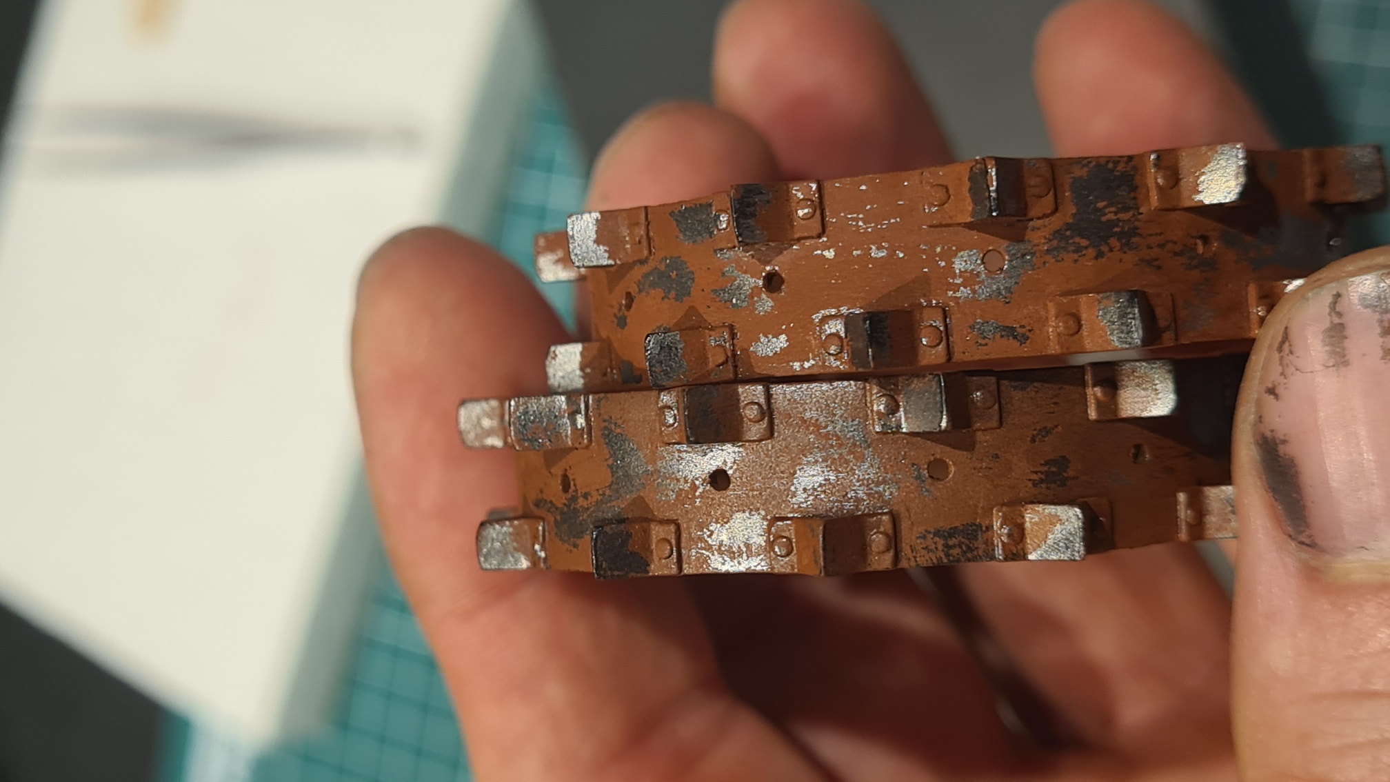 Das durchscheinende Metall ist mir etwas zu glänzend, später wird noch etwas (nicht viel) Dreck draufkommen. Wie in der Natur. So zumindest der Plan.