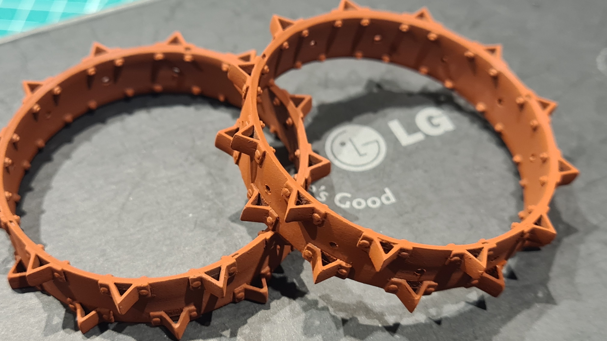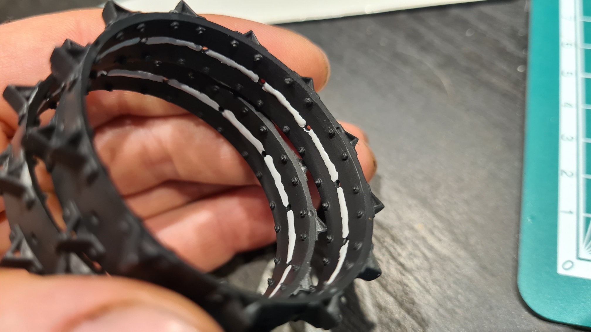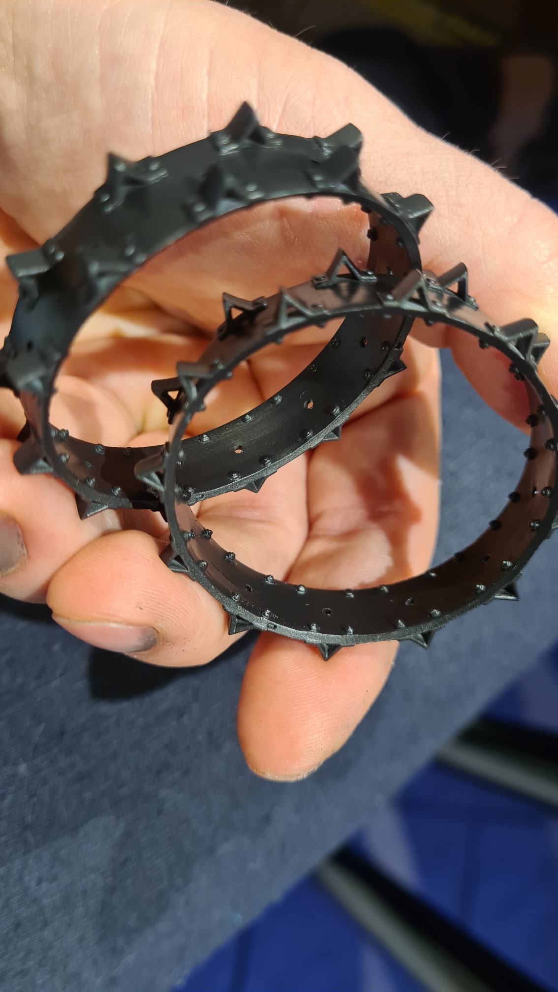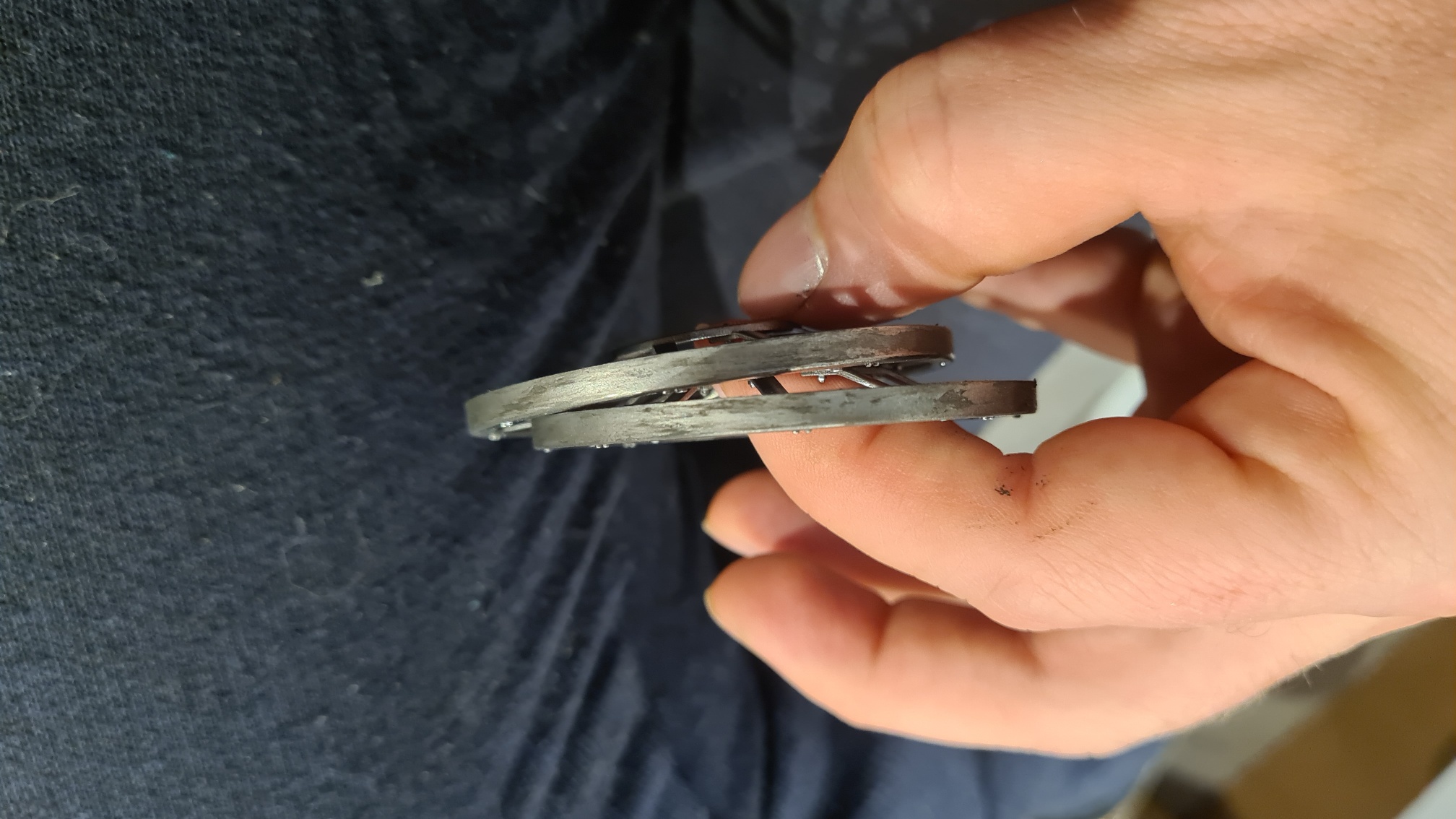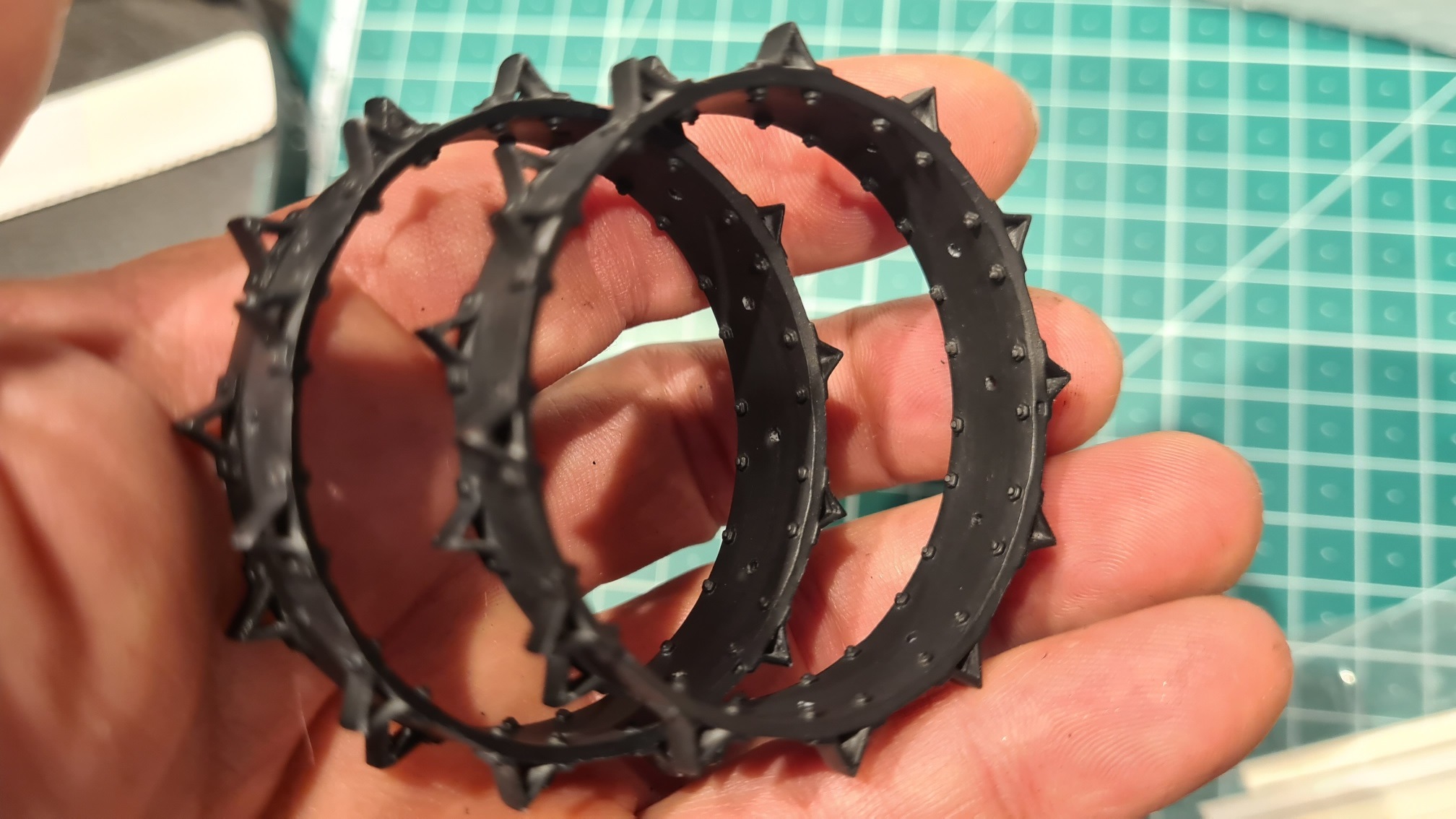 Nun muss man sich vorstellen, dass jedes Hinterrad aus zwei solcher Stahlzackenreifen zusammengebaut wird, in etwa so: