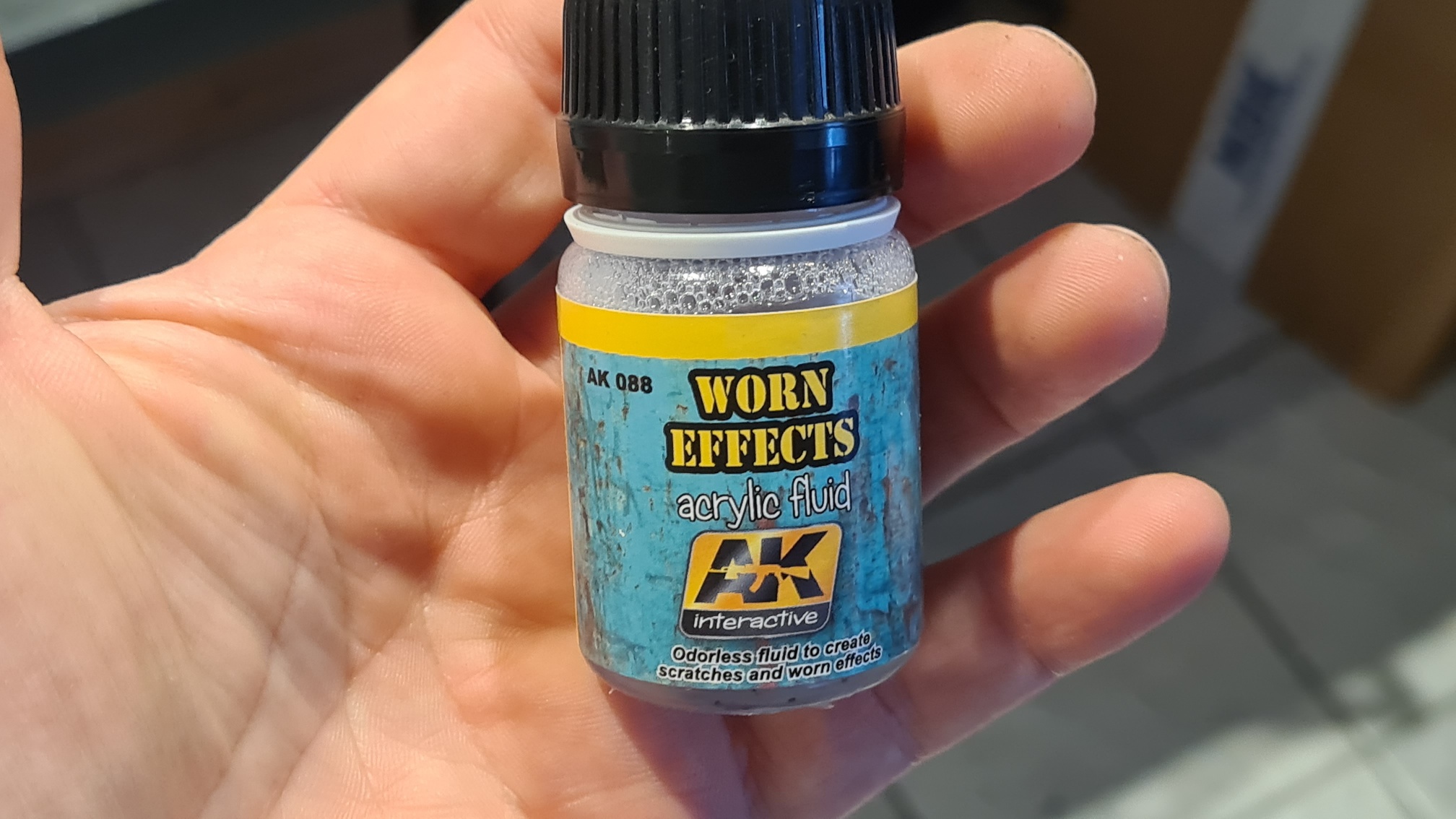 Die "Acker"laufflächen wurden mit diesem Spezialmittelchen 3 mal gesprüht. AK worn effects (AK088). Das Fläschchen für knapp 4 Euro, Haarspray ist da sicherlich günstiger. Aber es funktioniert wirklich sehr gut.