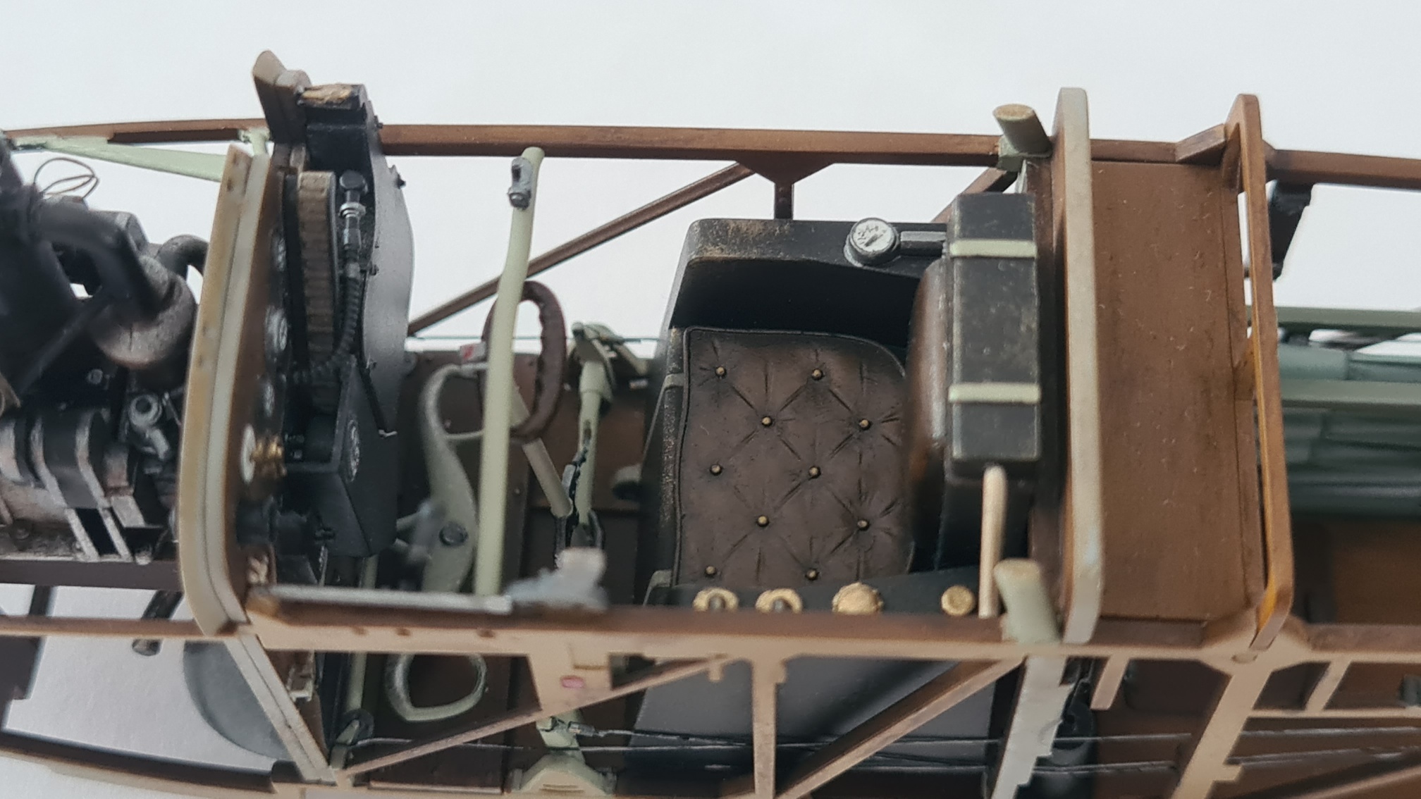 Was mich ebenfalls wirklich Zeit gekostet hat, war das Finden der passenden Farbe. Ich habe viel gemischt und experimentiert, bin dann aber am Ende bei AK11007 "Burnt Red" gelandet. Die Maschine sollte dabei (entsprechend historischer Fotos) glänzend sein. Für mich eine Herausforderung, denn sie sollte nicht frisch aus dem Werk kommen. Also irgendwie eine vernünftige Balance finden zwischen, glänzend und verschmutzt.