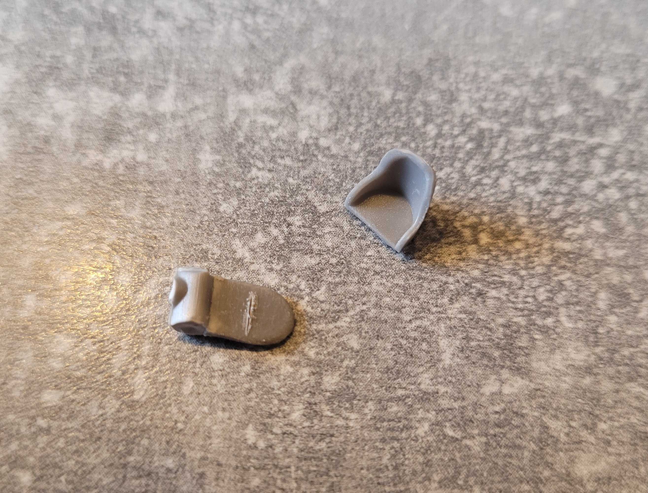 Nach einer gefühlten Ewigkeit voller Pinzettengefummel sitzen die Streben nun endlich an ihrem Platz. Wie weiter oben schon zu sehen war, hab ich sie nicht komplett zerlegt, sondern nur den oberen und vorderen Teil gemeinsam abgeknipst. Dann jeweils die vordere Strebe leicht gekürzt und diesen "Winkel" dann zuerst angebracht. Danach waren die V-förmigen Teile dran. Da musste ich nach dem Try-and-Error-Prinzip vorgehen. Also vorsichtig kürzen, gucken ob es passt, nochmal kürzen, wieder probieren usw usw.