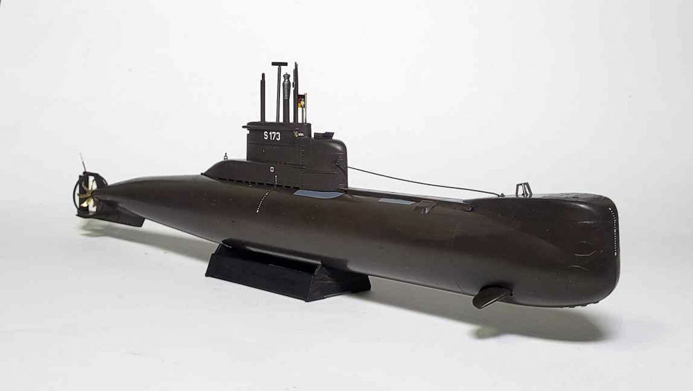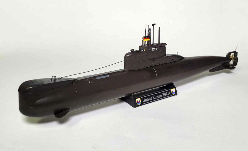Beim Modell der Klasse 206A sind beide vorderen Tiefenruder ausgefahren dargestellt. In der Realität war aber nur eines der beiden draußen, entweder für Auf- oder Abtrieb. Um diese Technik darzustellen, habe ich die Tiefenruder zu beiden Seiten ausgefahren.