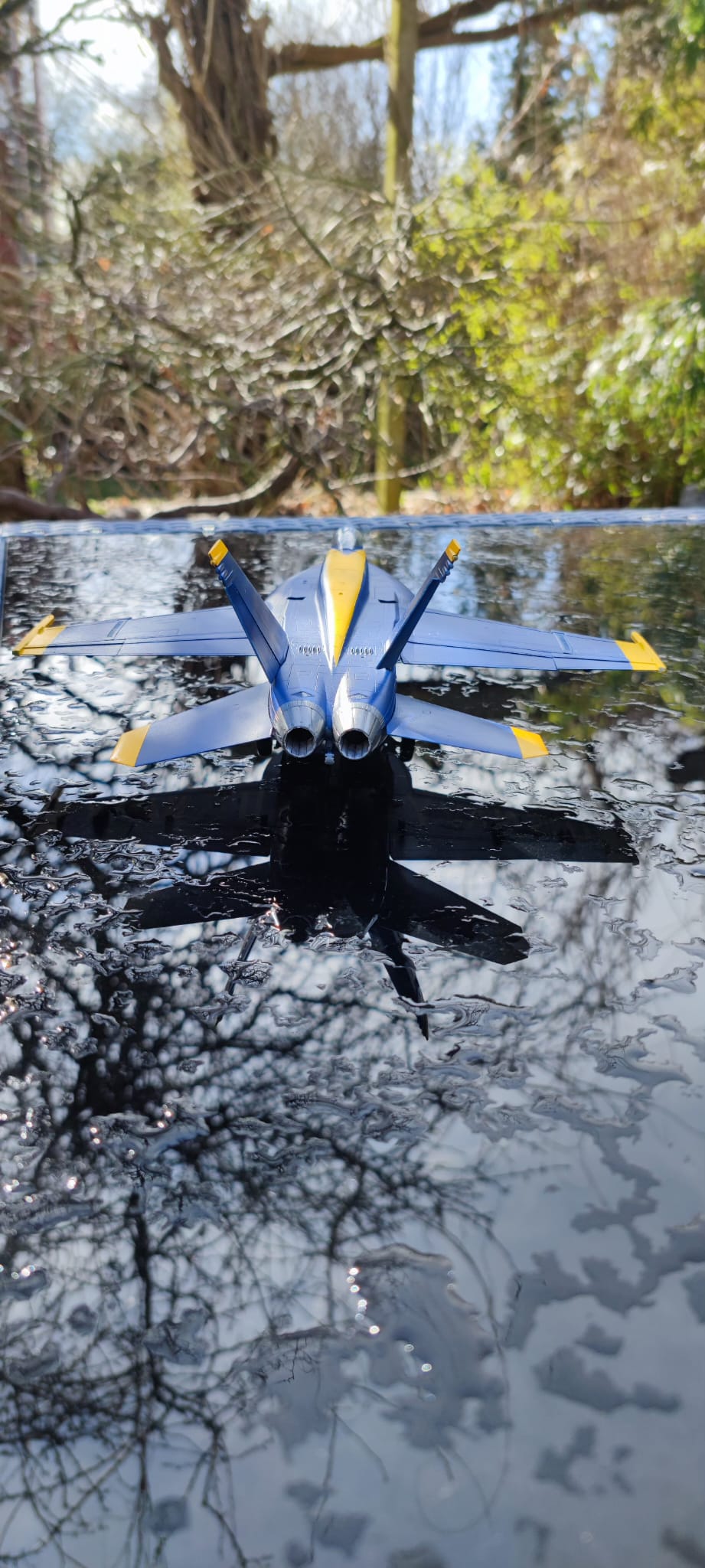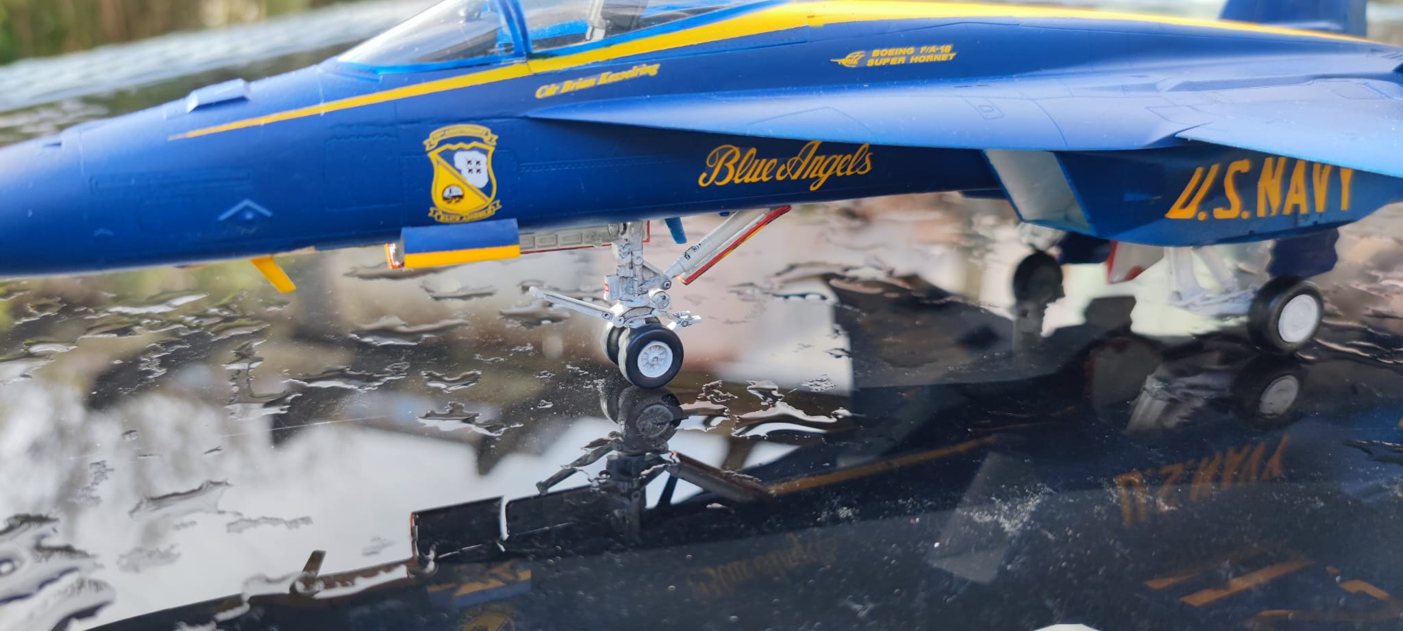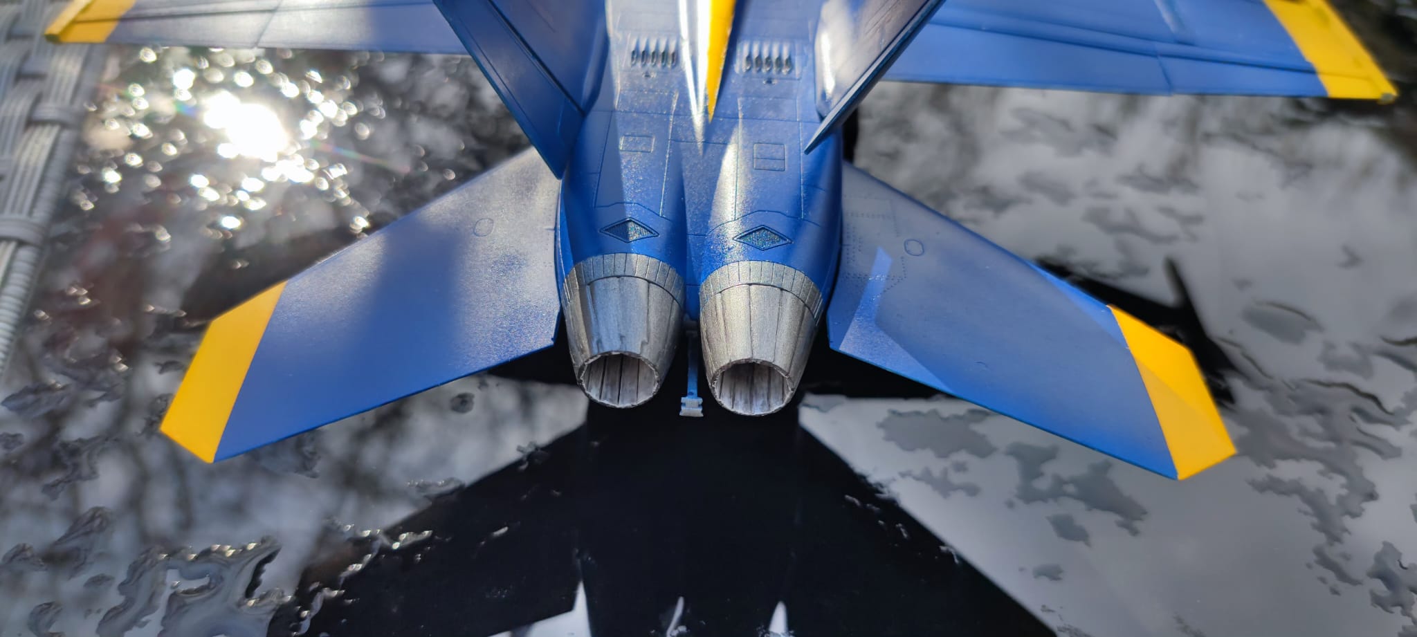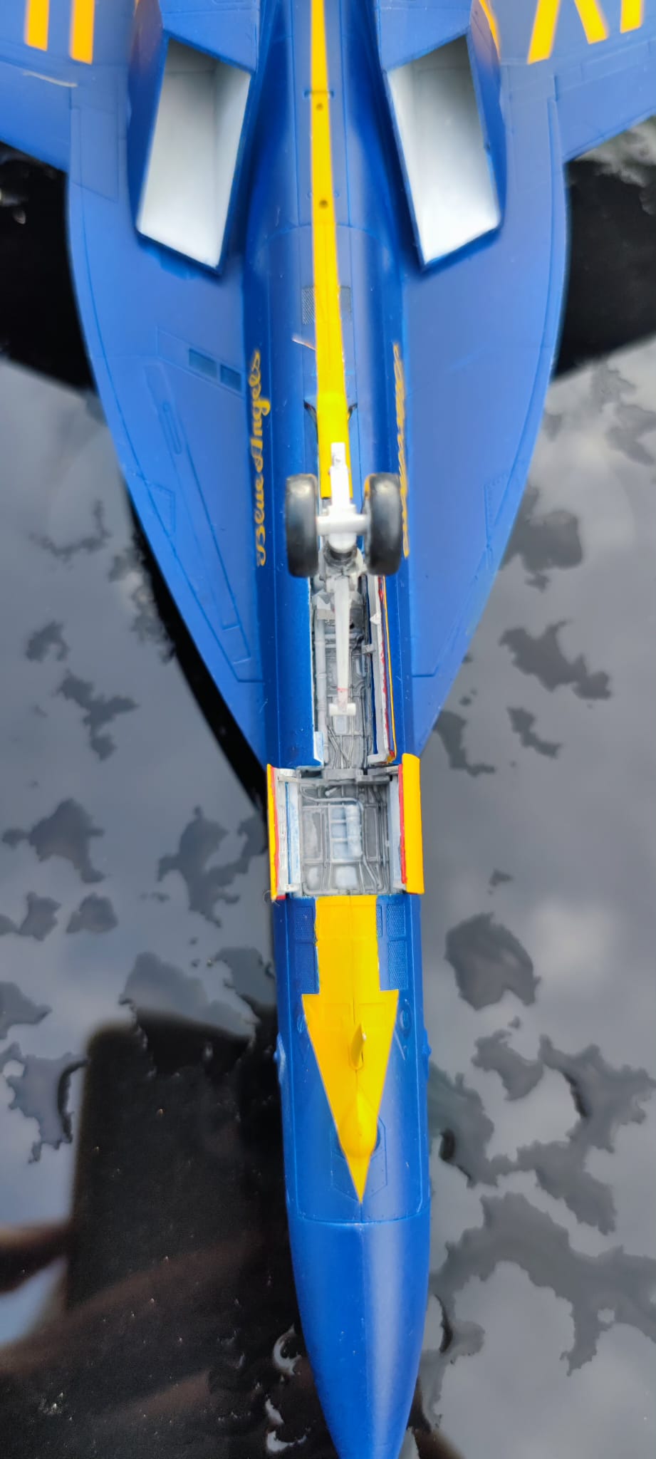 Die "Maverick" ist noch in Arbeit, die Blue Angels dagegen ist fertig. Alles bis auf das Logo und den Blue Angels Schriftzug mit der Airbrush lackiert. Washing im Fahrwerk hat ganz gut geklappt. Auf dem Blau sieht man nix mehr davon. Das war enttäuschend 😞