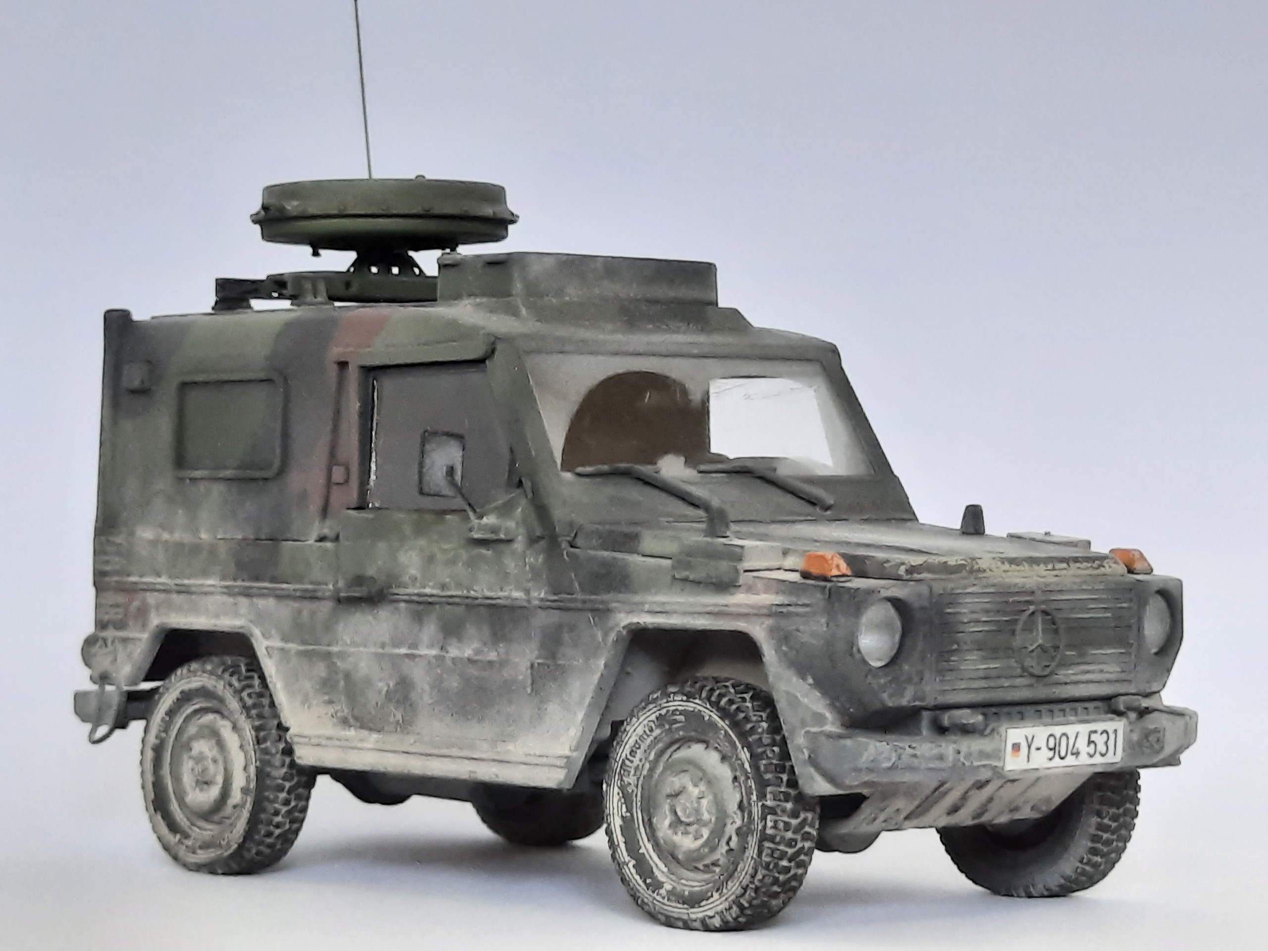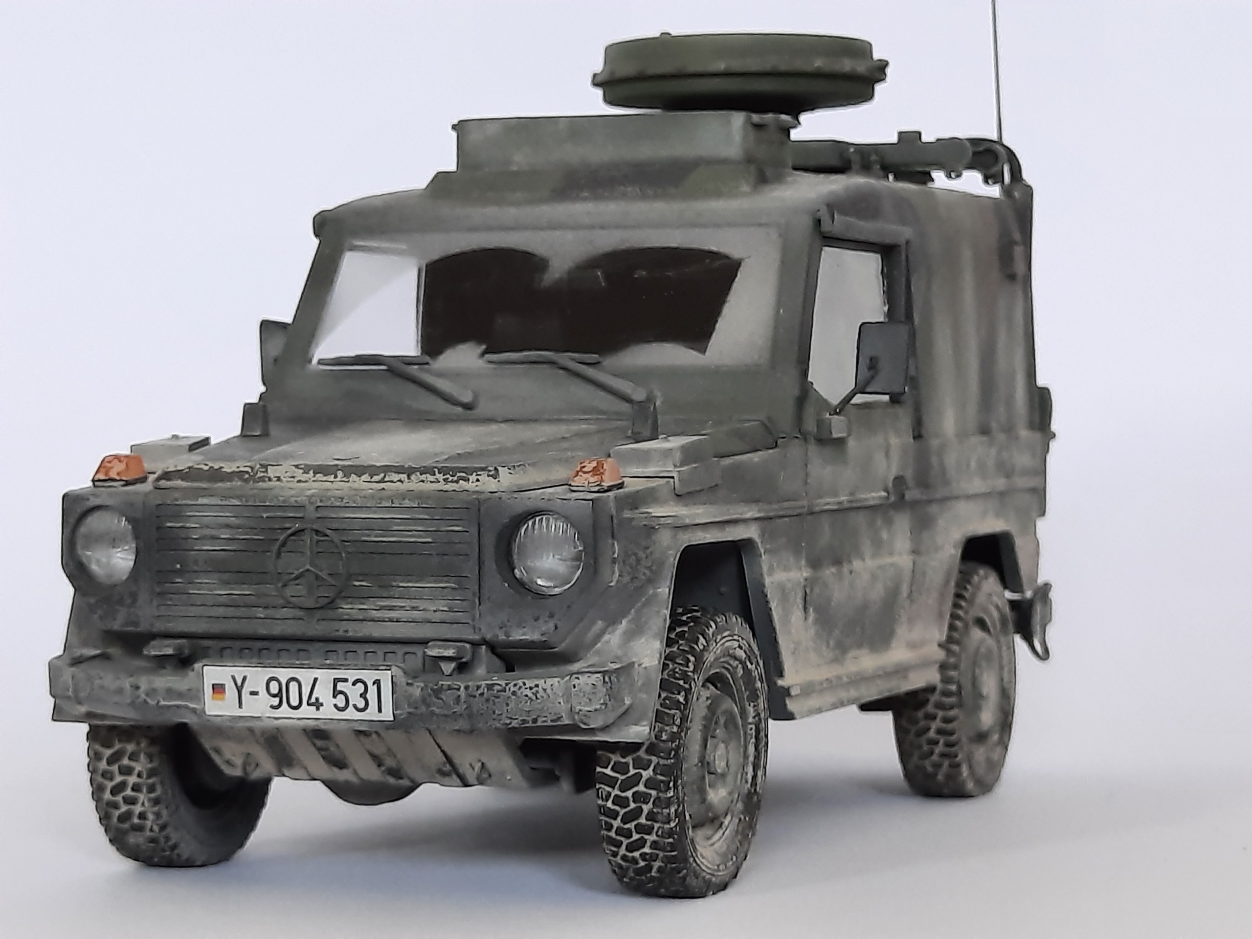 Das Hauptmodell ist von Revell, dazu kommen Resinräder von DEF, Antenne SEM 80/90 von Leopard Club und 3D Umbausatz von Mad-Modellbau.