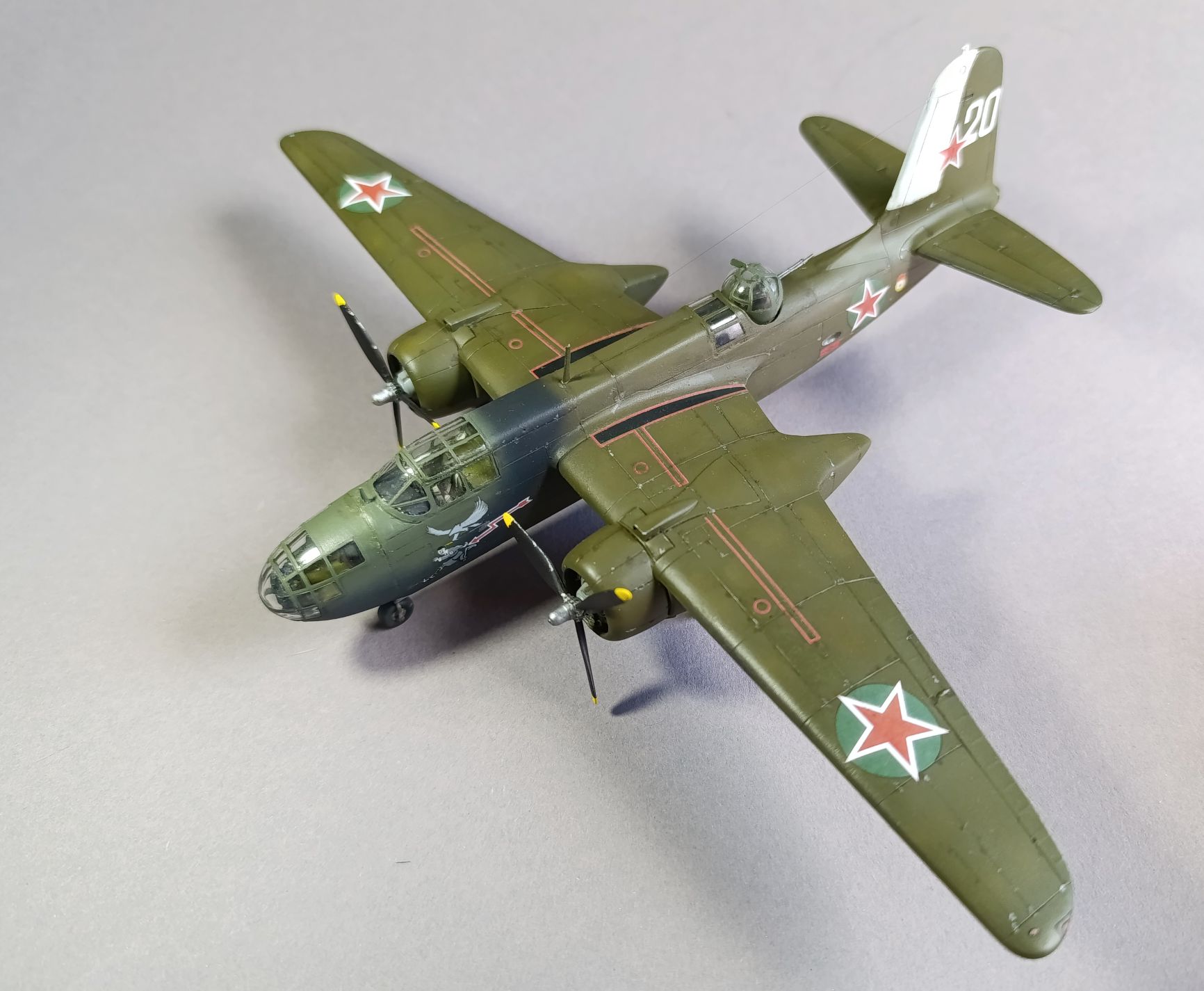 ein weiteres Projekt welches schon vor über einen Monat fertiggestellt habe, war die Douglas A-20, welche im Rahmen des Land and Lease Programms in die Sowjetunion gelangte. Da war sie dann Teil des 8. Garde-Bobmerregiments, wo sie von Mitte 1944 bis zum Kriegsende in Polen und letztlich in Berlin teilnahm.