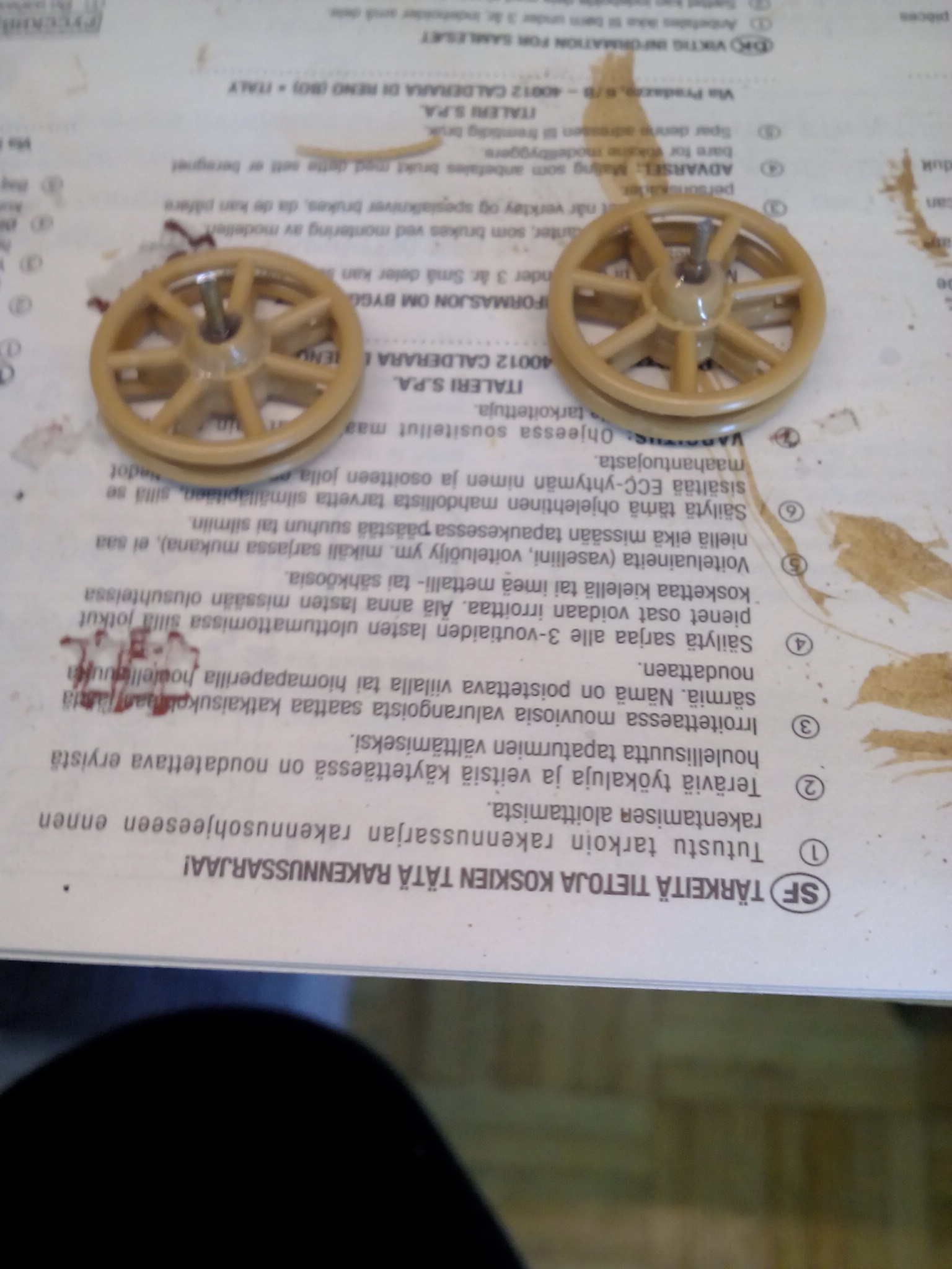 Antrieb müsste neu fixiert werden mit Nägeln die mit Sekundenkleber neu eingepasst wurden, da sie total instabil waren und