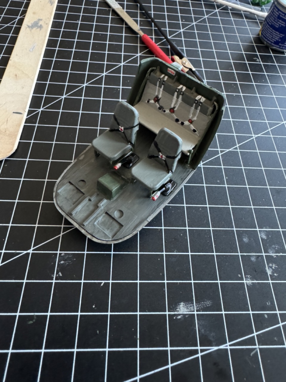 Beim Cockpit, war ich auf Grund der "fehlenden" Decals für das Bedienelement unter den Fluglageanzeigen etwas einfallslos und habe mich für hässliches Bepinseln entschieden, hat da jemand Tipps was hier Sinn machen würde?