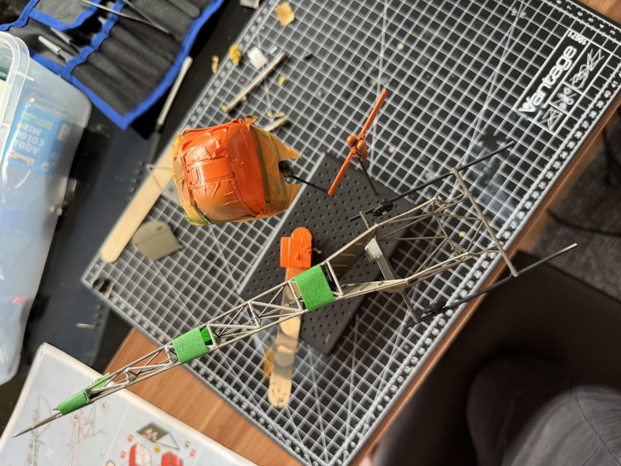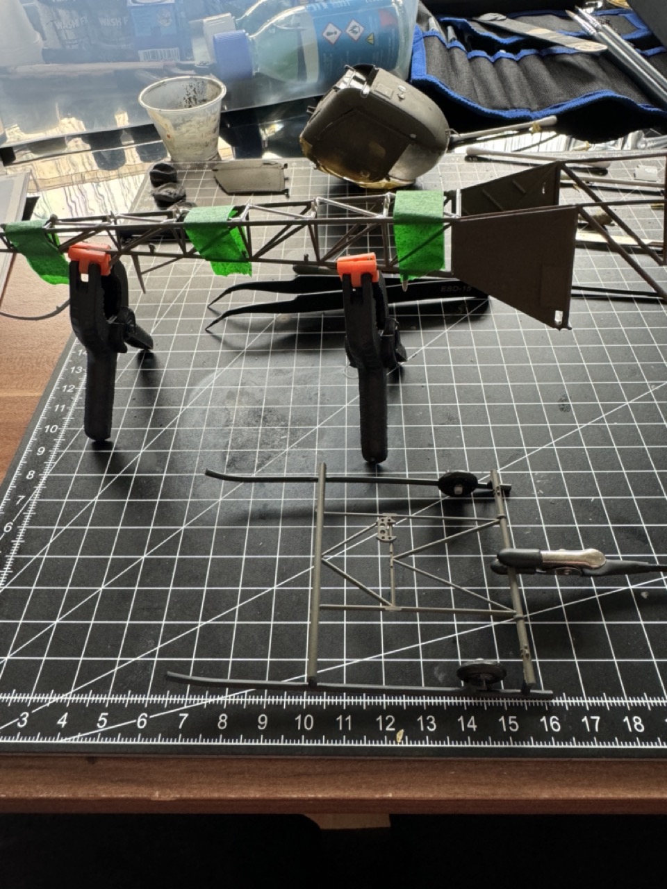 Dann kam der größte Spaß, der Heckausleger war ein richtig schweres Bauteil finde ich. Es hat sich ständig etwas verzogen oder ist wieder abgerutscht. Aber am Ende wird alles gut. :)