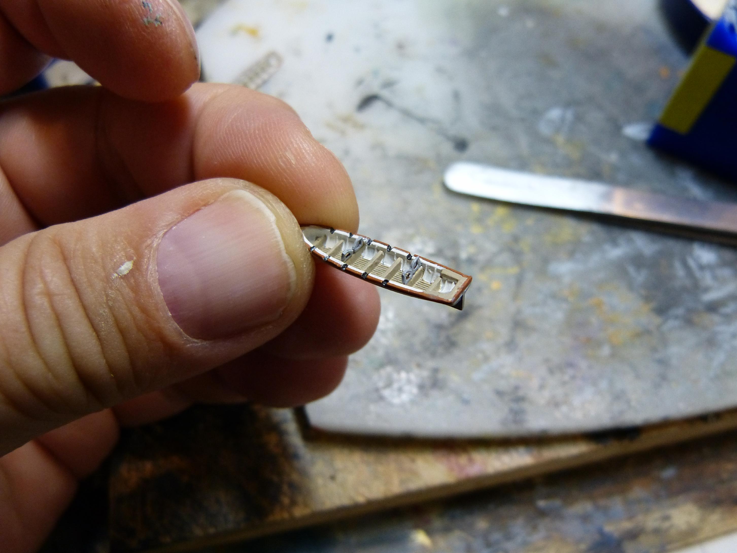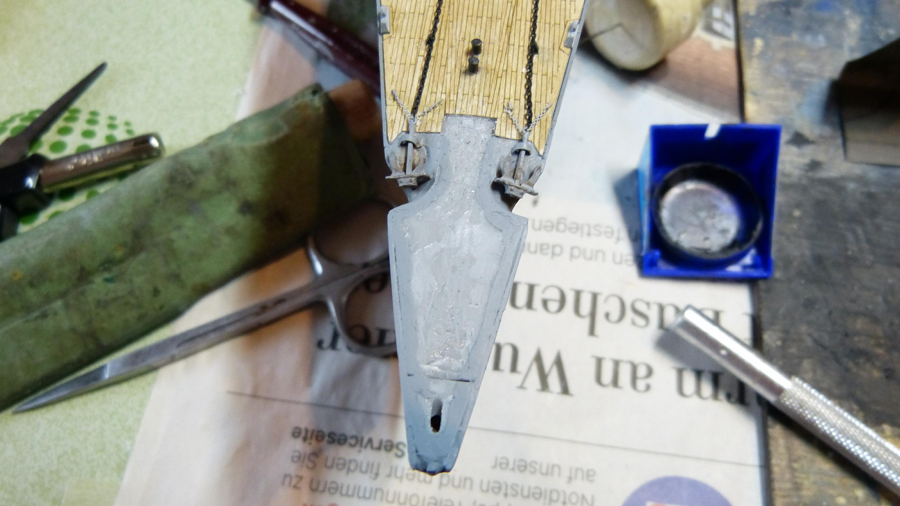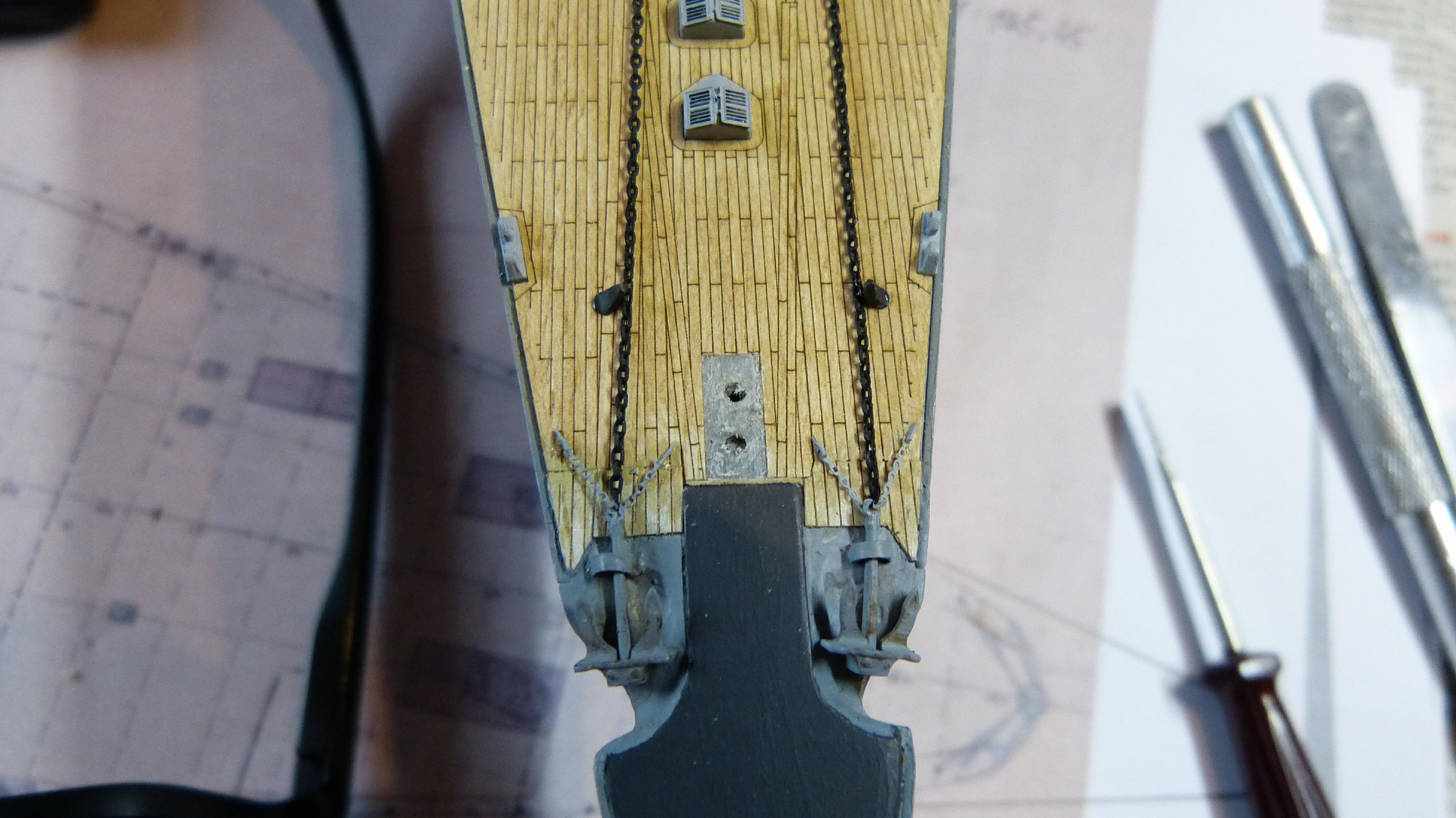 Anhand von Originalfotos habe ich zufällig bemerkt, dass bei meiner GU die mittigen Poller im Bereich des Vorschiffs zu weit vorne saßen. Das wurmte mich etwas und ich habe es dann korrigiert.