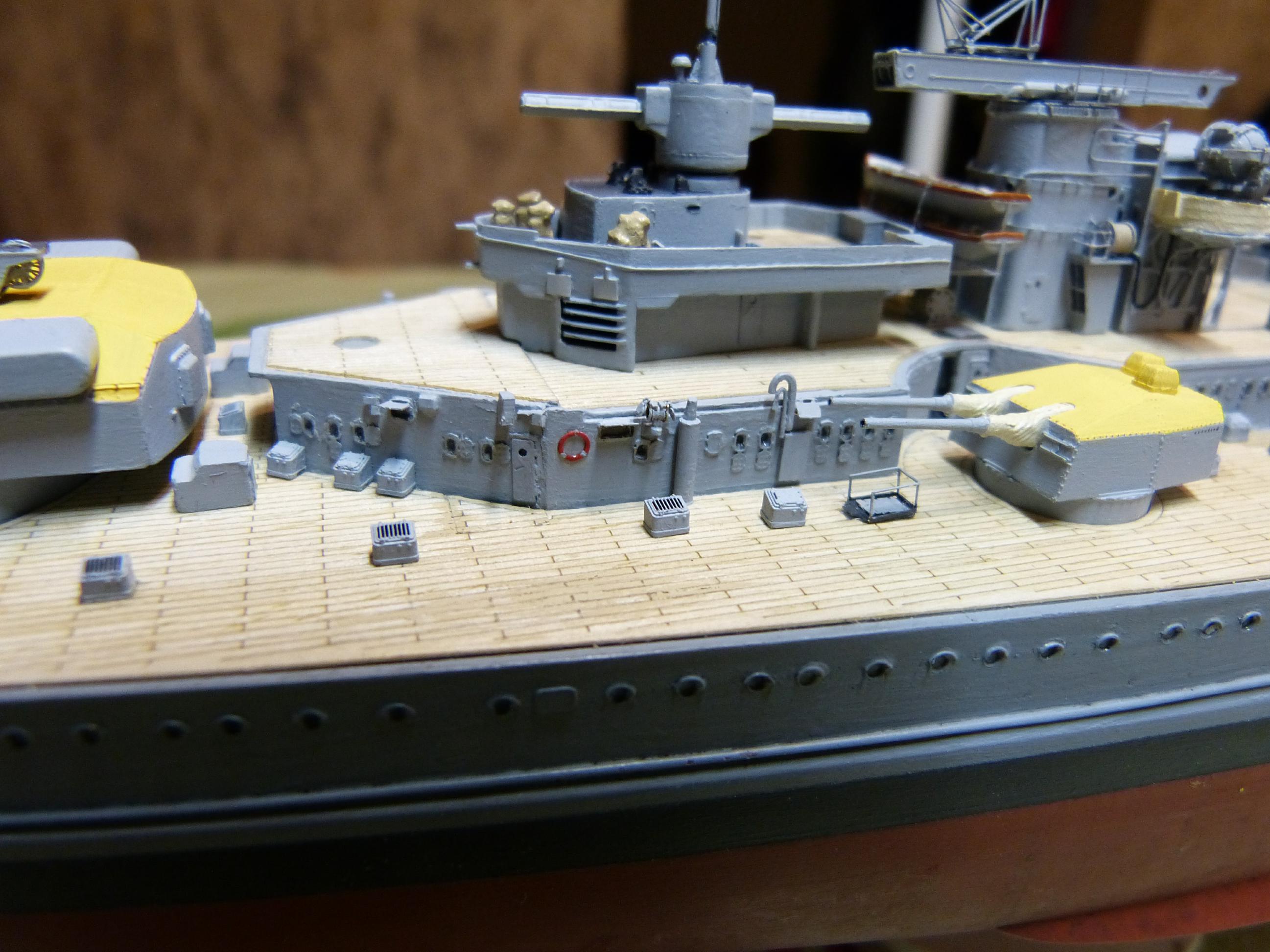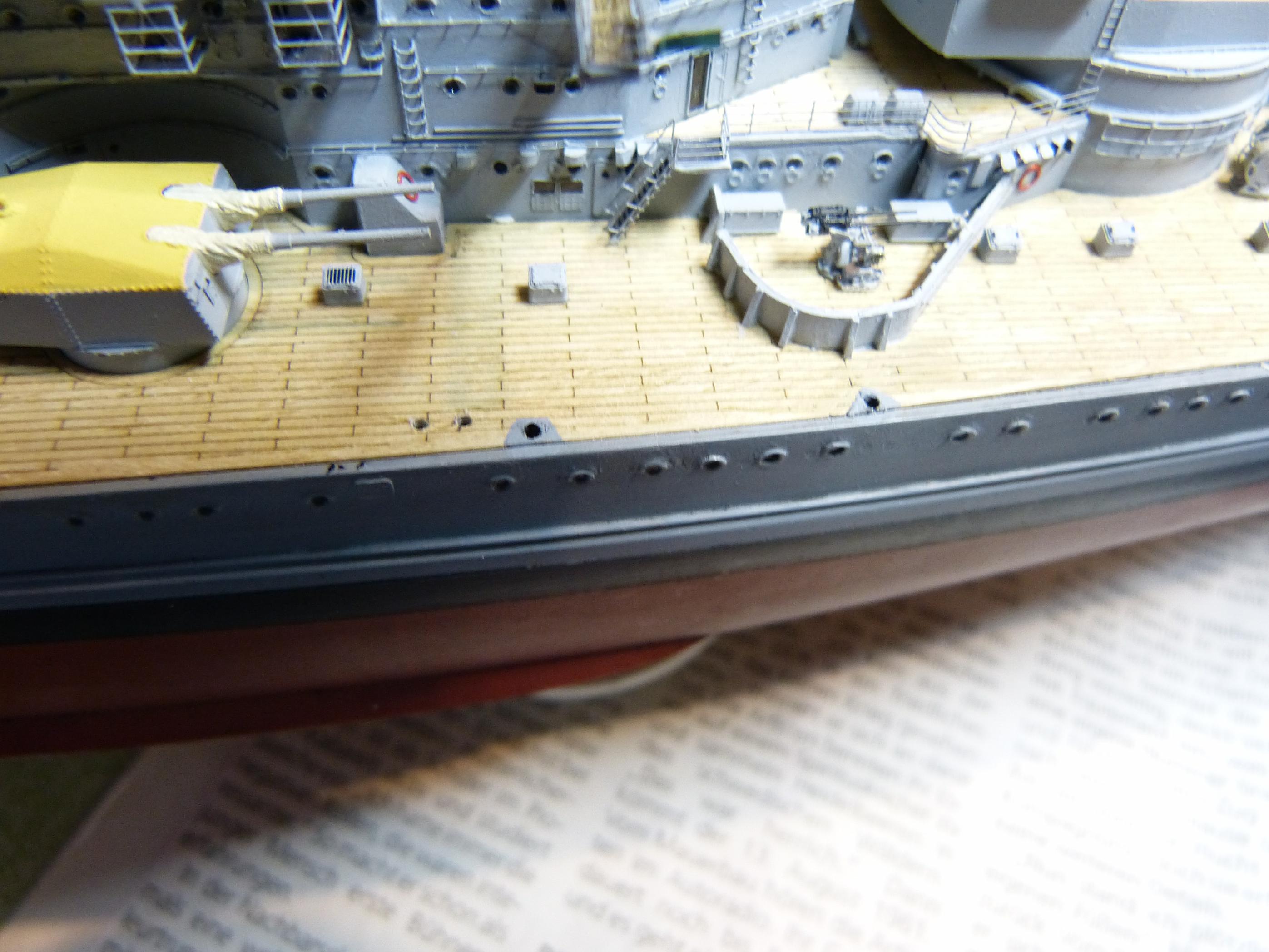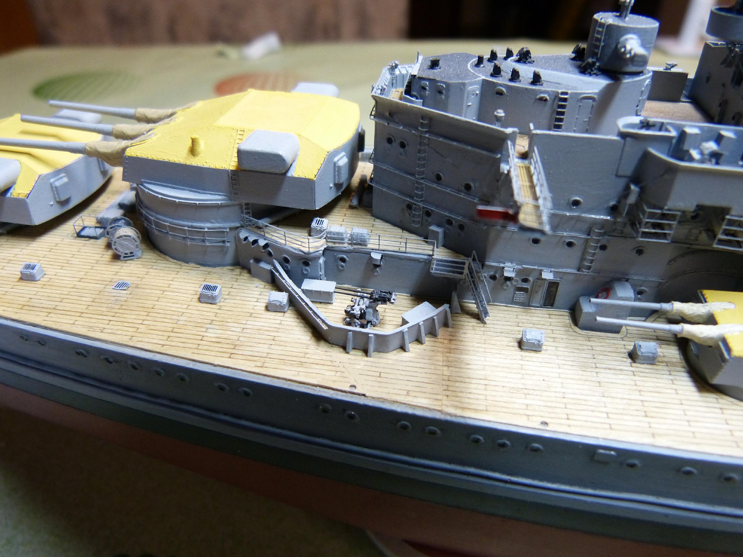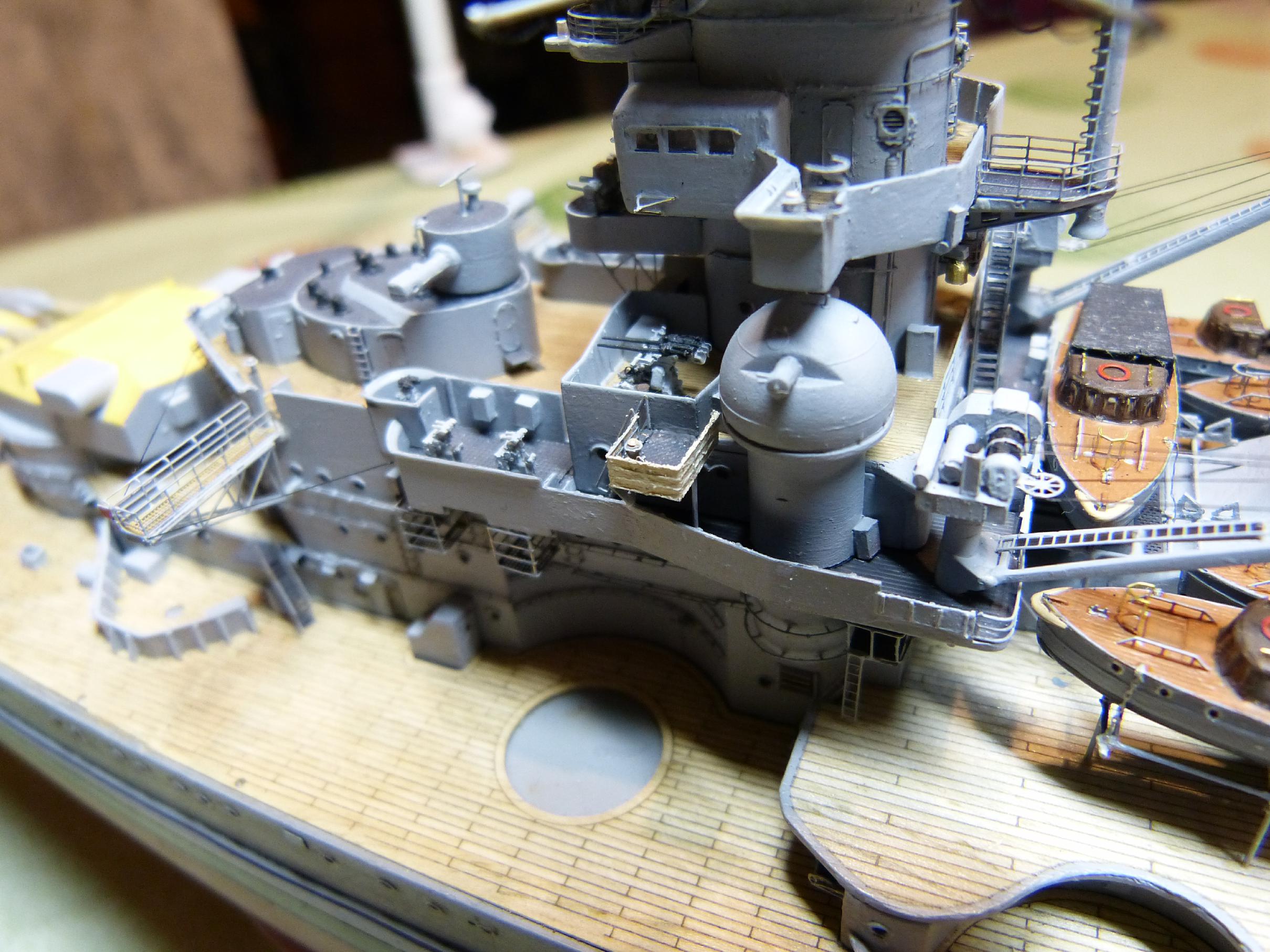 Von der Anpassung des oberen Teils habe ich leider keine Fotos gemacht. Nur so viel, den hinteren Teil habe ich wie bei SH mit Riffelblech ausgeführt (laut Dragon Holzdeck). Riffelblech ist für den Bereich der Beobachtungsgeräte am logischsten und im (gut recherchierten) Draminski-Scharnhorst-Buch auch so gegeben.