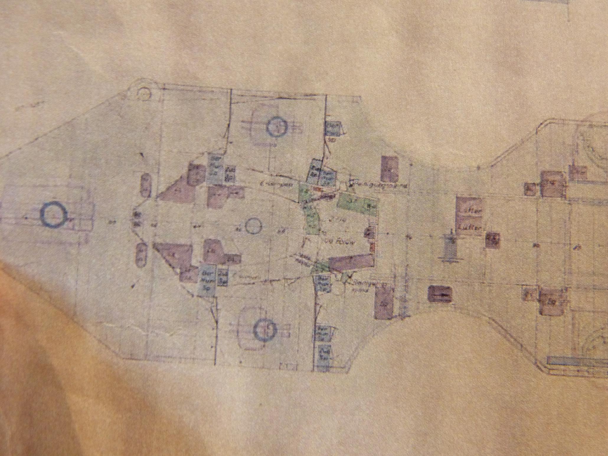 Hier die Heckankereinrichtung. Falls ich es noch nicht erwähnt habe, Heckanker wurden bei allen DKM-Großkampfschiffen nie mit Ankerketten benutzt. Die Anker lagen stets verzurrt in der Heckklüse und wurden nur unter bestimmten Bedingungen verwendet (z.B. Verhindern des Abdrifts bei starkem Seegang), und zwar mit Stahltrosse.