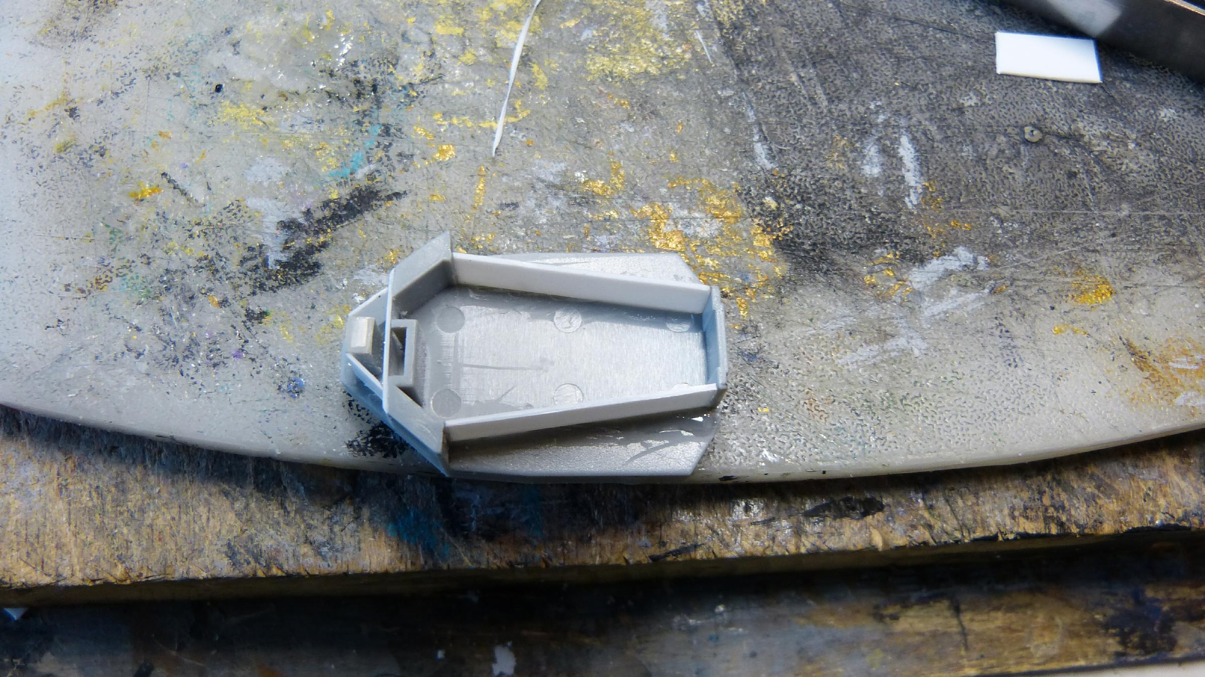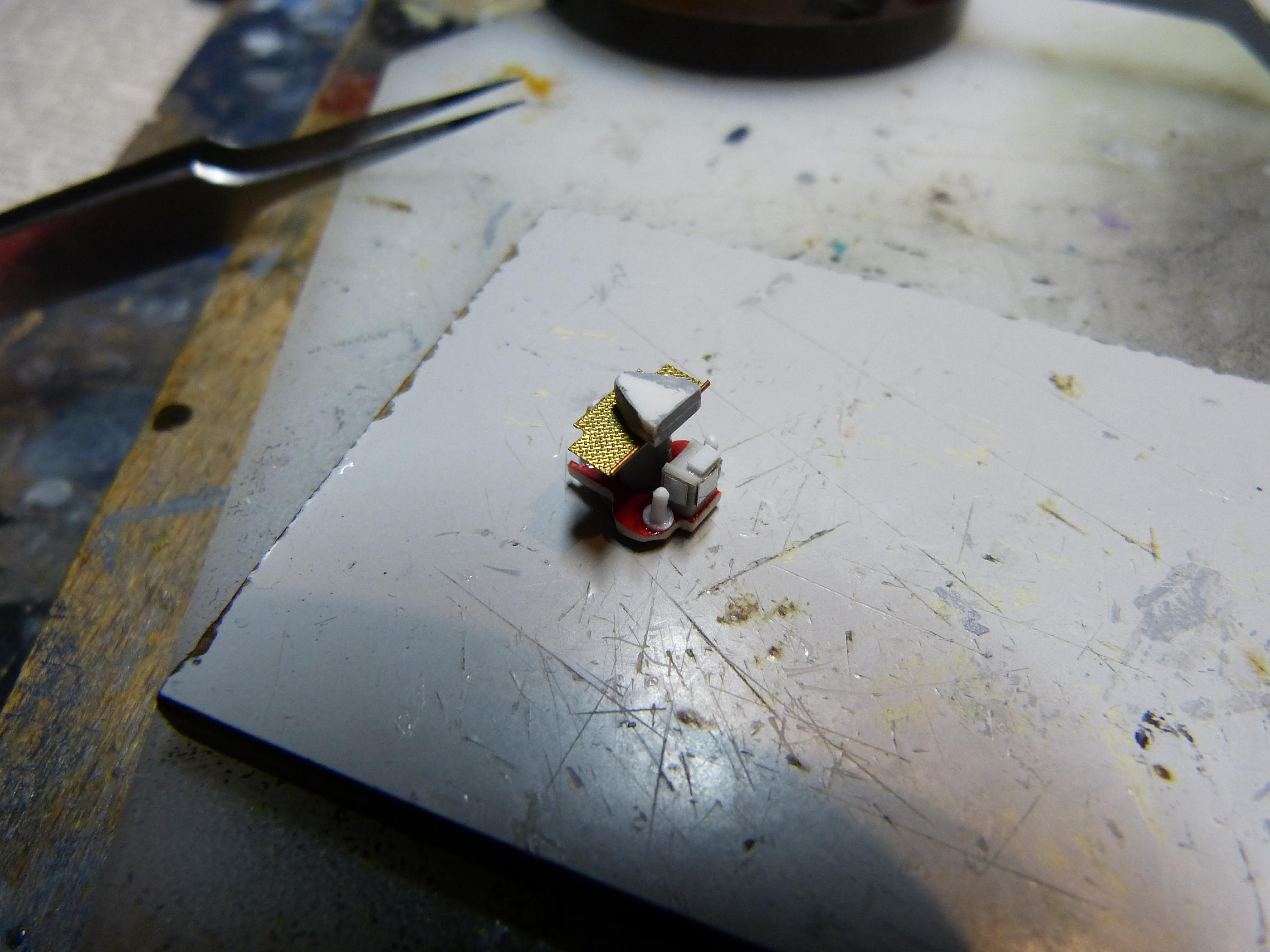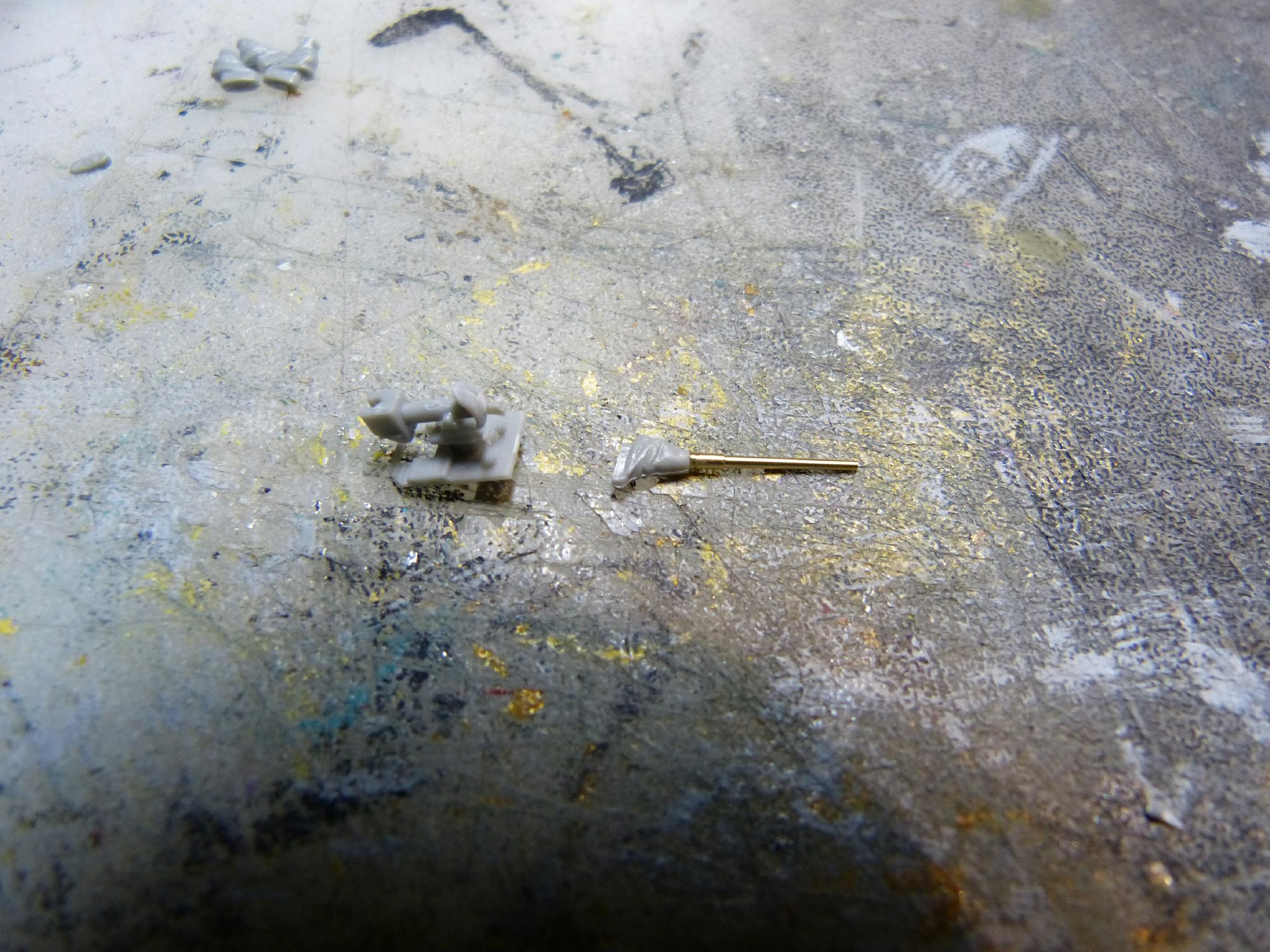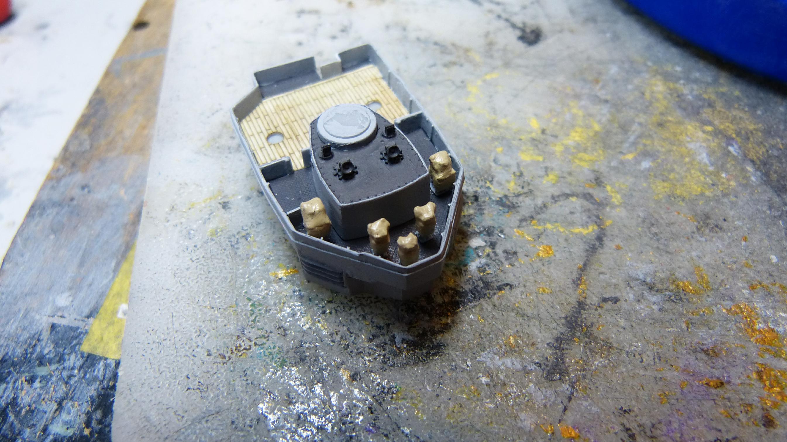 Danach habe ich mich mit den hinteren Aufbauten befasst, da gibt es im Wesentlichen nur zwei Sachen: Schleuderbasis und achterer Leitstand. Zunächst der letztere.