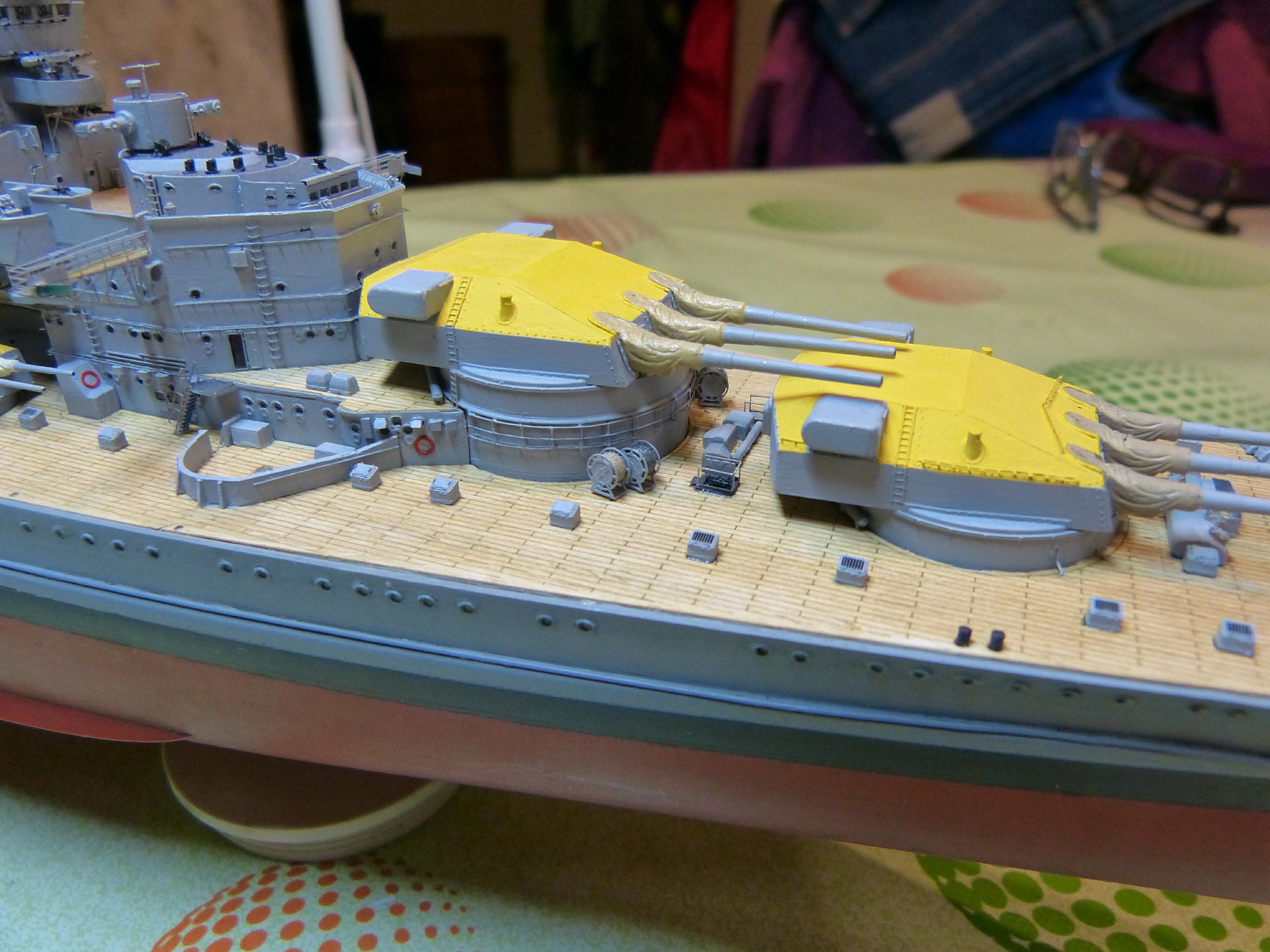 Hier nochmal ein Foto aus der Totalen, Stand gestern Abend. MA-Türme, Schleuderunterbau, achterer Leitstand und Turm Cäsar sind noch nicht verklebt.