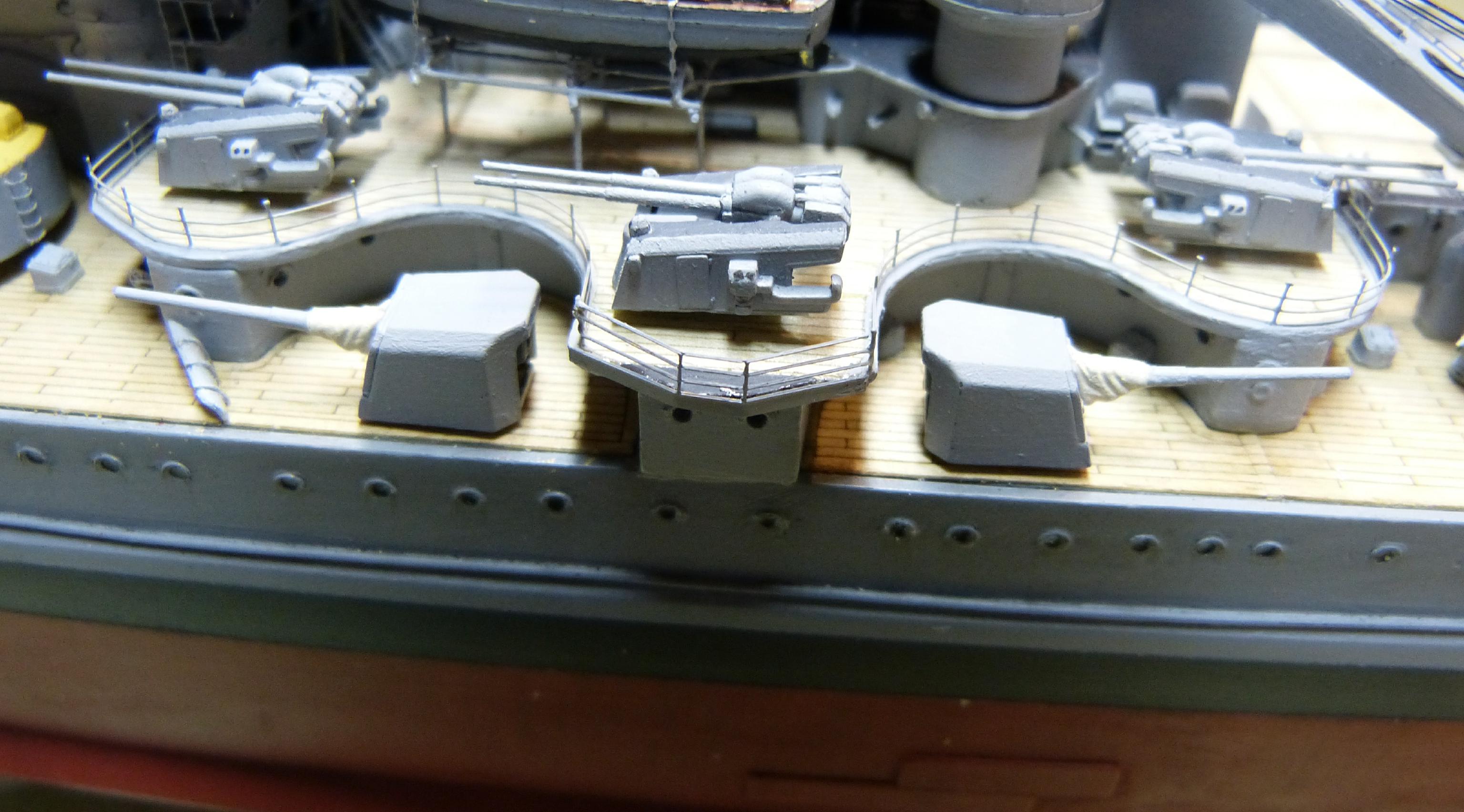 Weiterhin wurden alle vier Zwillingstürme der 15 cm-MA gebaut, natürlich mit Messingrohren. Fehlen nun nur noch die Einzellafetten.