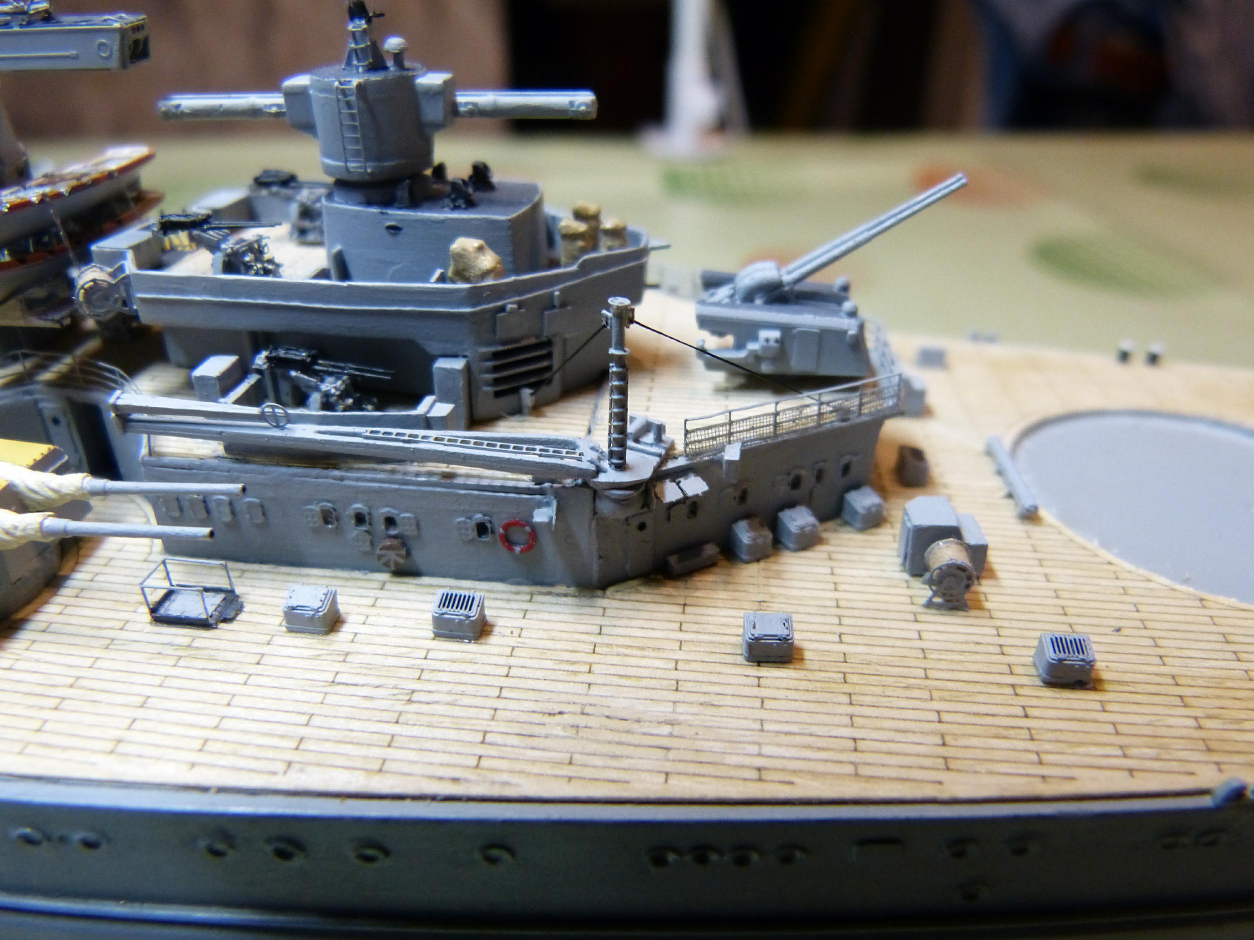 Hier sind auch noch einige Niedergänge auf dem Hauptdeck zu sehen, sie entstanden aus Ätzis, die dem Holzdeck-Set beilagen.