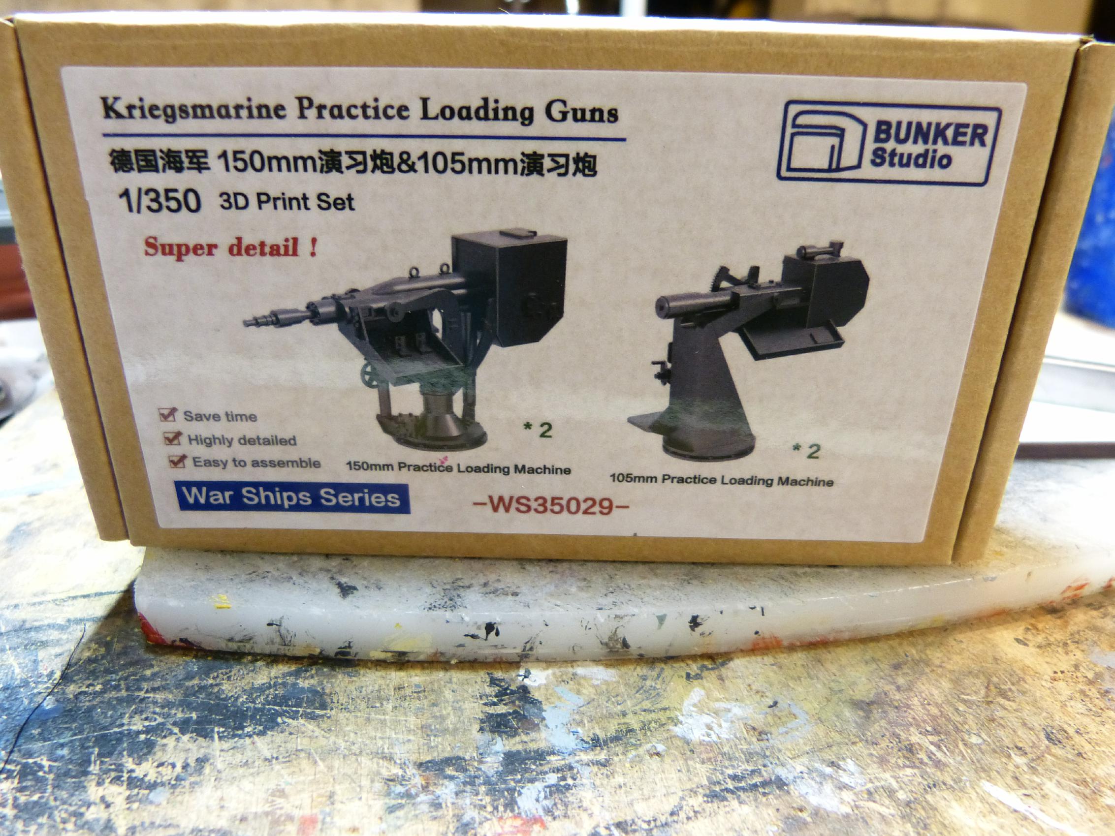 Alle vier Schlachtschiffe hatten für die Ladekanoniere sogenannte Übungs- oder Exerzierkanonen an Bord, an denen die Schnelligkeit und Effektivität des Nachladens für die Zehnfünfer und Fünfzehner geübt werden konnten. Bei BS und TP befanden sich diese hinter Turm C, bei SH unterhalb der Bootsauflieger vor dem Schornstein backbord und steuerbord. Bei GU auf dem Hauptdeck vor den Bordkränen. Bei den anderen Modellen habe ich diese aufgebessert oder gescratcht, für die GU habe ich welche aus Fernost geordert, und zwar von Bunker Studio.