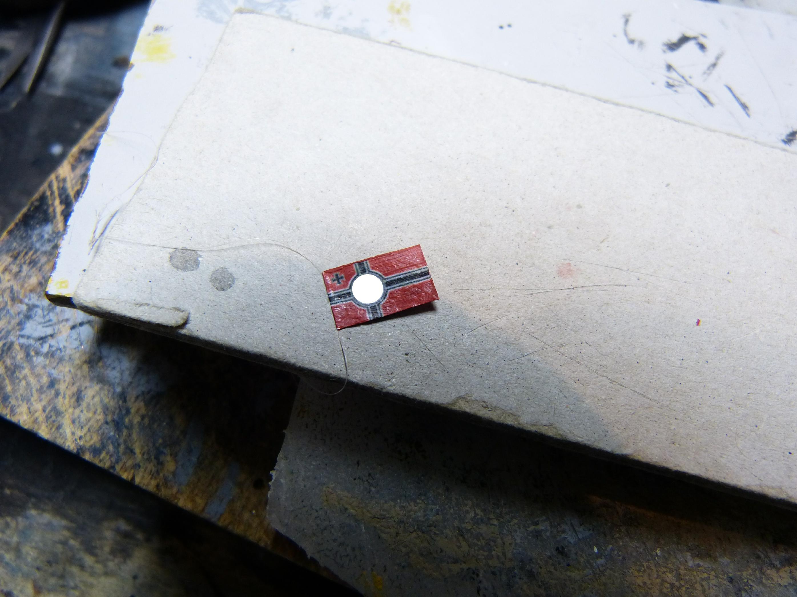 Später habe ich mir die Seekriegsflagge vorgenommen, die bei GU im Winter 1940 hauptsächlich am hinteren Kleinmast gesetzt war. Habe ja schon einige gefertigt, hier mal Schritt für Schritt erklärt:
